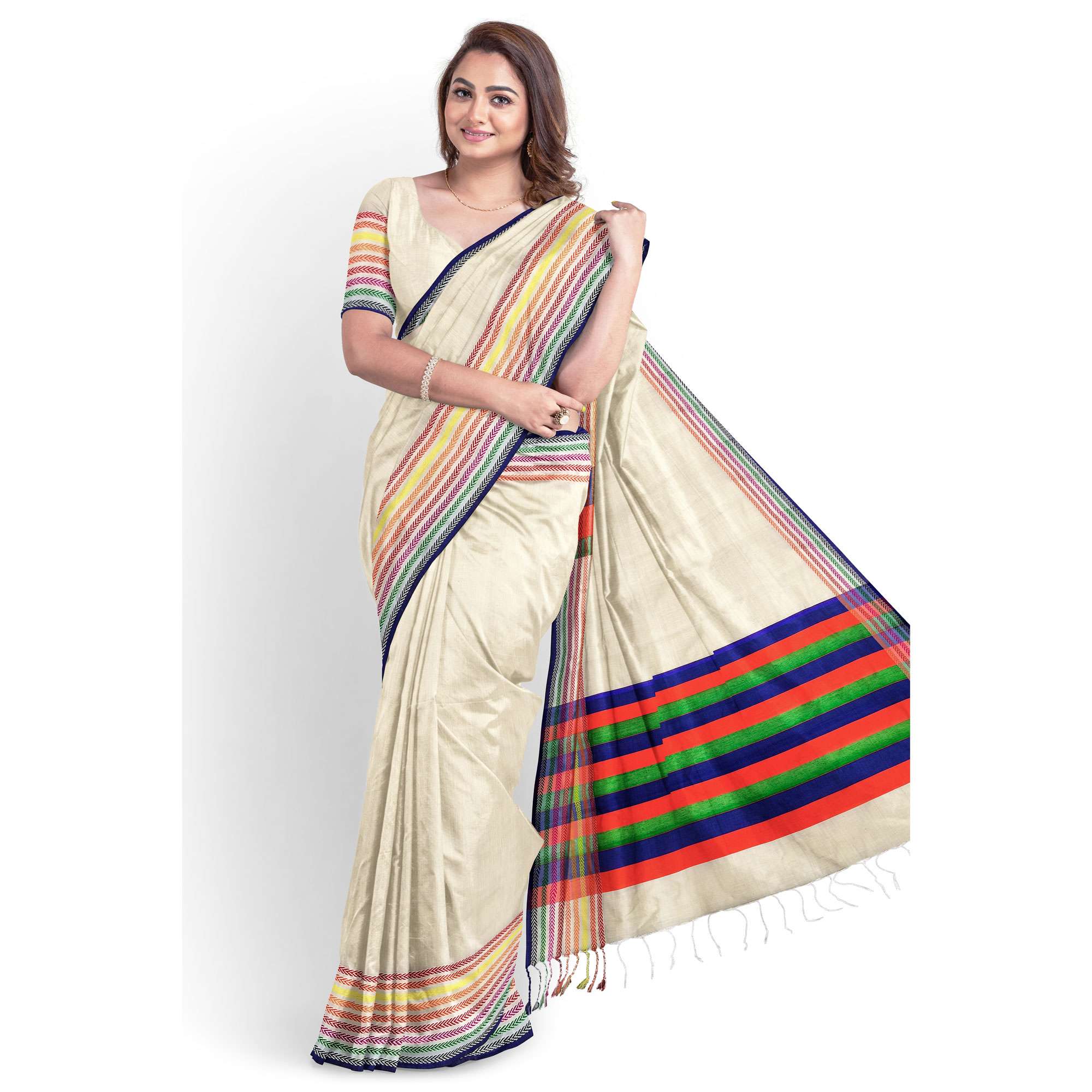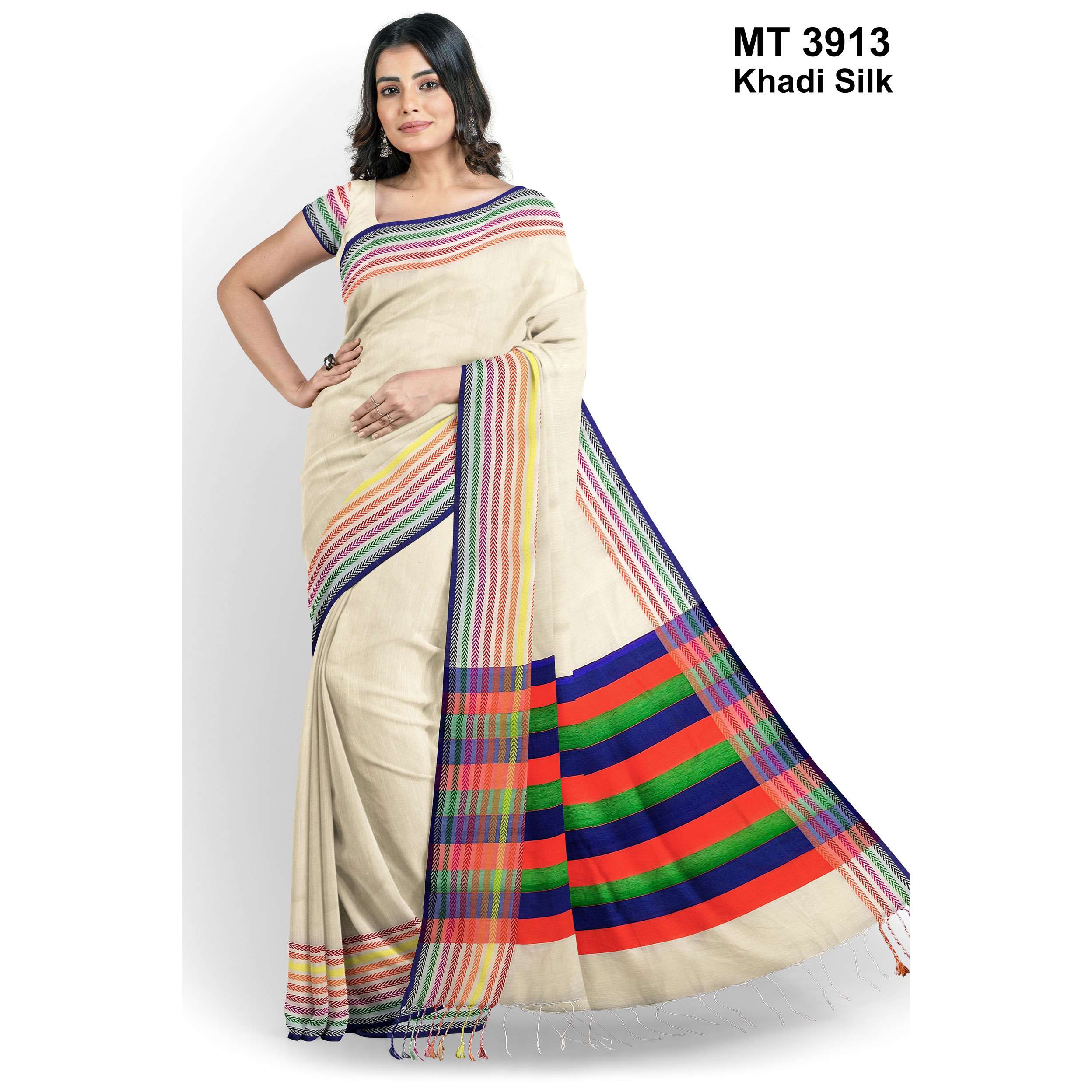 টাঙ্গাইল তাঁতের খাদি সিল্ক ধানছড়া পাড় শাড়ী ব্লাউজ পিছ সহ (MT-3913)