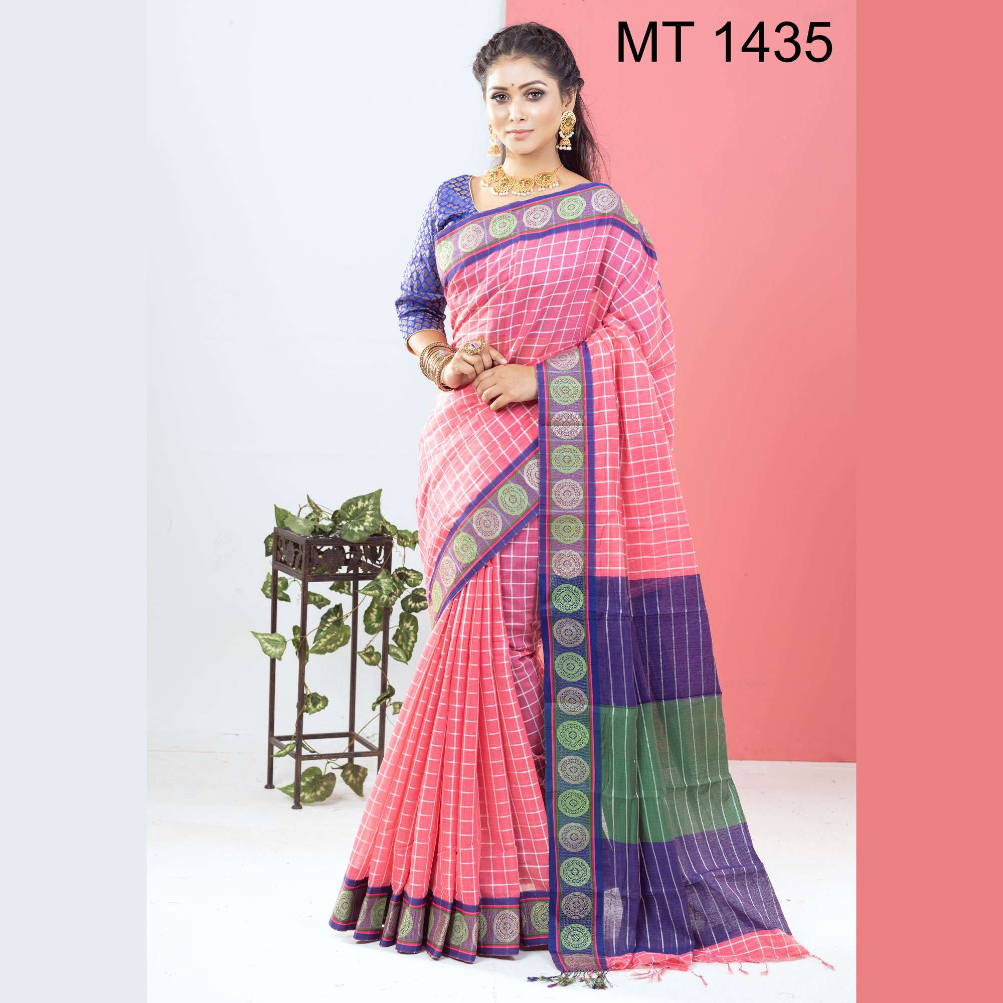 টাঙ্গাইলের ঐতিহ্যবাহী হাফ সিল্ক বুননের এক নান্দনিক উপস্থাপন। এতে রয়েছে সুন্দরভাবে হাতে বোনা কাজ ও সূক্ষ্ম ডিজাইন, যা শাড়িটিকে করে তুলেছে আলাদা ও দৃষ্টিনন্দন। আঁচল এবং পাড়ে নকশার নিপুণতা চোখে পড়ার মতো। এটি এমন একটি শাড়ি যা পরিধানে এনে দেয় আত্মবিশ্বাস ও আভিজাত্য।