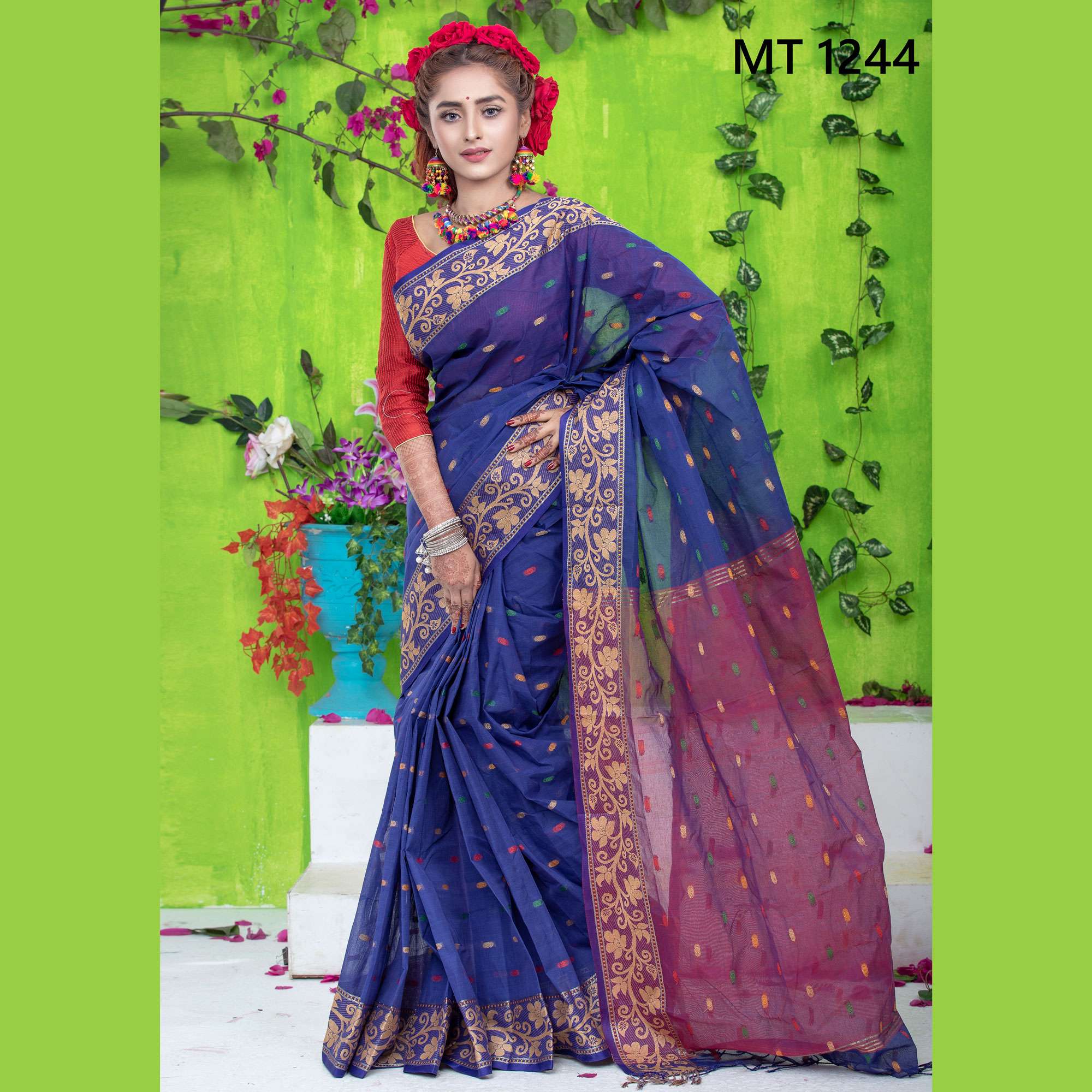 টাঙ্গাইল তাঁতের সুতি বড় লতা পাড় বুটি শাড়ী ব্লাউজ পিছ সহ (MT-1244)