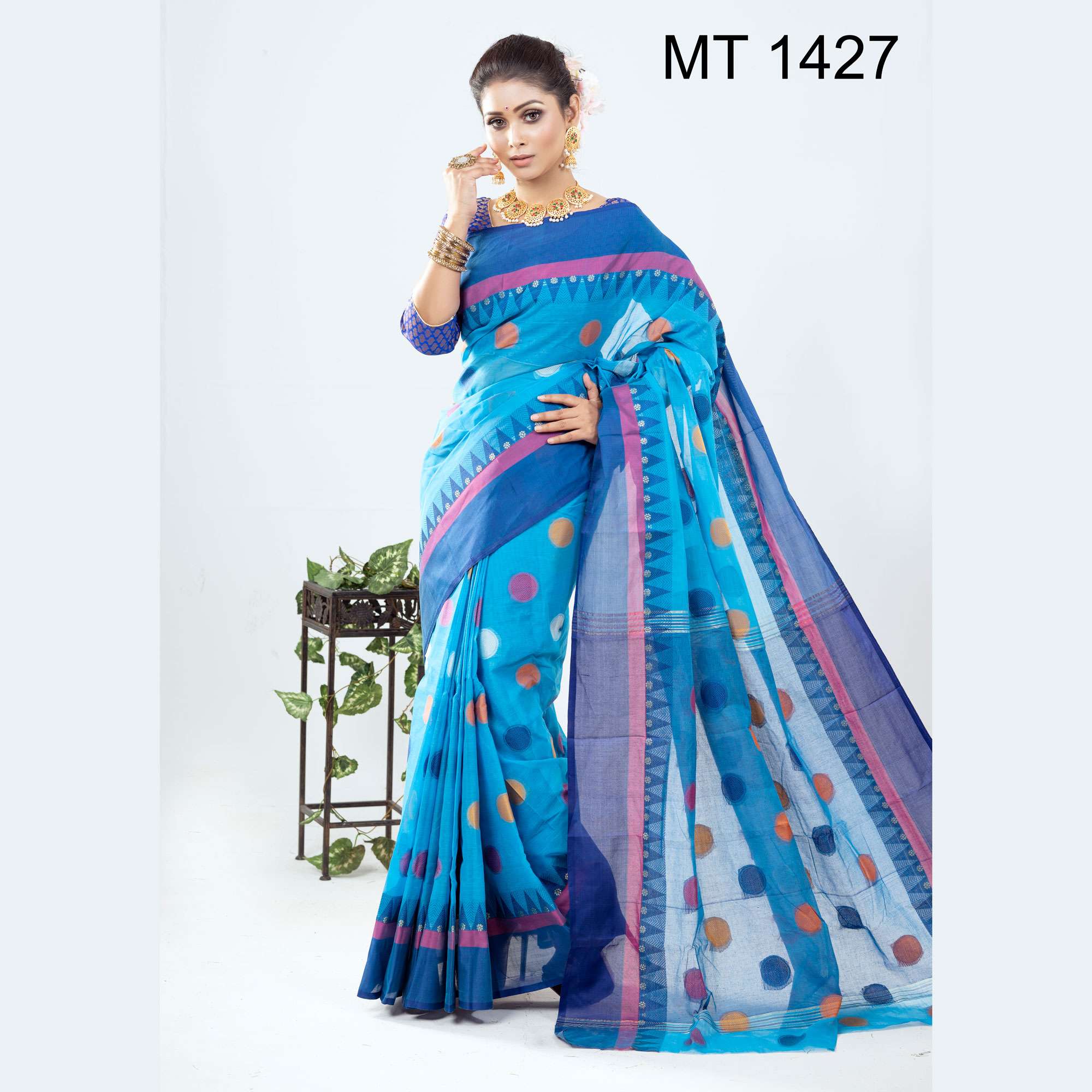 টাঙ্গাইল তাঁতের সুতি শাড়ী বাংলাদেশের টাঙ্গাইল অঞ্চলের এক ঐতিহ্যবাহী হস্তচালিত শাড়ী। এই শাড়ীর প্রধান বৈশিষ্ট্য হলো এর সূক্ষ্ম সুতি সূতা এবং হালকা ও আরামদায়ক গঠন, যা গরম আবহাওয়ার জন্য একদম উপযুক্ত। টাঙ্গাইল শাড়ীতে সাধারণত জামদানি শৈলীর নকশা দেখা যায়—ফুল, লতা বা জ্যামিতিক নকশা হাতে তাঁতে বোনা হয়। এর পাড় ও আঁচলে থাকে চমৎকার রঙের সমন্বয় ও সূক্ষ্ম কারুকাজ। এই শাড়িগুলো তাদের নান্দনিকতা ও পরিশ্রমসাধ্য হস্তশিল্পের জন্য পরিচিত এবং প্রতিদিনের ব্যবহার থেকে শুরু করে বিশেষ অনুষ্ঠানেও পরার জন্য আদর্শ।