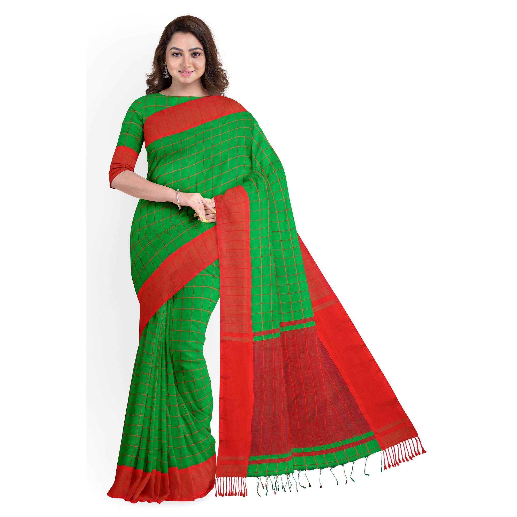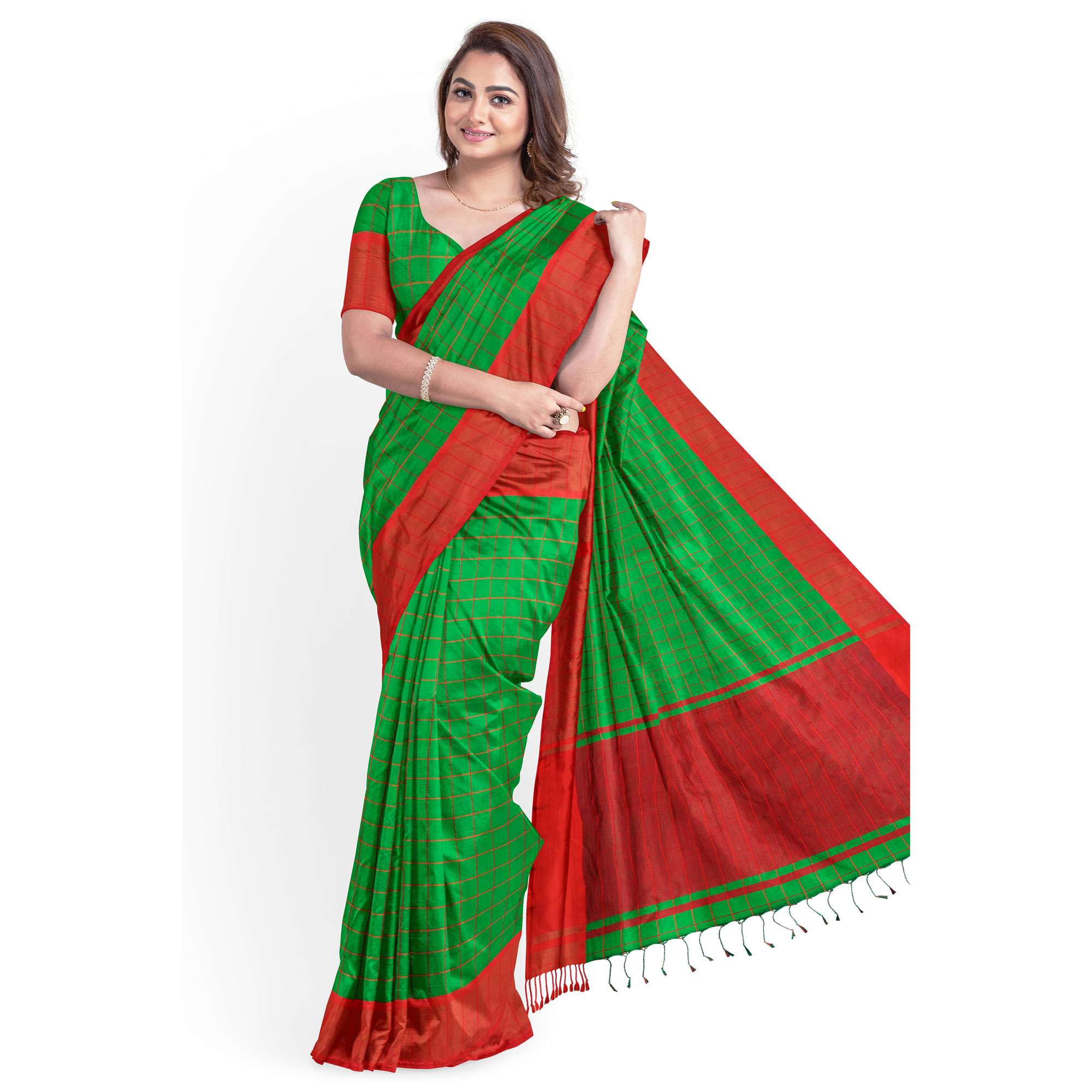 দৃষ্টিনন্দন সুতা ও আধা-সিল্কে তৈরি এই টাঙ্গাইল শাড়িটি ঐতিহ্য আর আধুনিকতার অপূর্ব সমন্বয়। এতে ব্যবহার করা হয়েছে ঘন বুননের ওপর ছককাটা প্যাটার্ন এবং সাদামাটা কিন্তু পরিপাটি পাড় ও আঁচল, যা শাড়িটিকে দিয়েছে নান্দনিক এক সৌন্দর্য। হালকা-পাতলা ও পরার জন্য আরামদায়ক এই শাড়ি দৈনন্দিন ব্যবহার বা উৎসব, উভয় ক্ষেত্রেই উপযুক্ত।