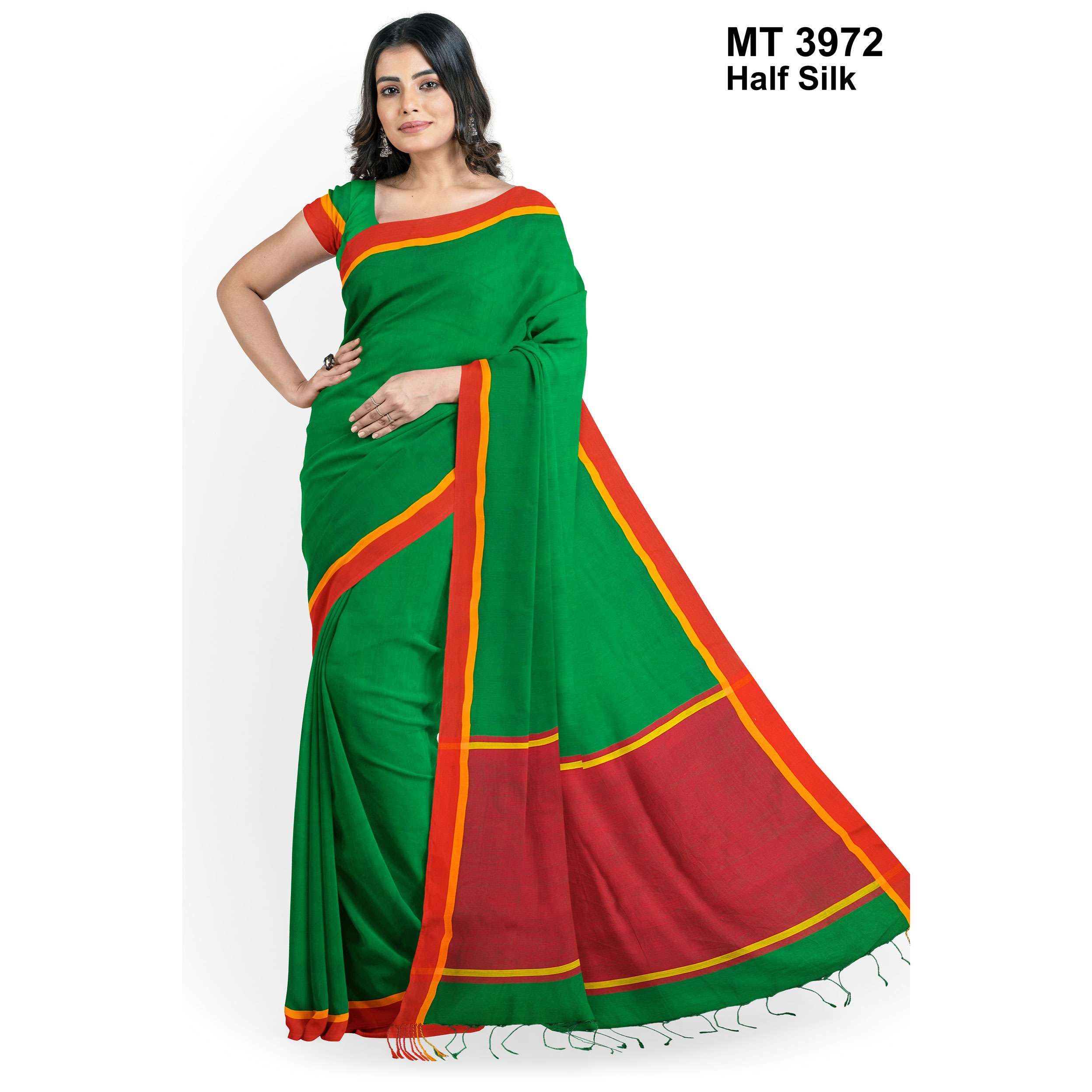 টাঙ্গাইল তাঁতের হাফসিল্ক শাড়ী ব্লাউজ পিছ সহ (MT-3972)