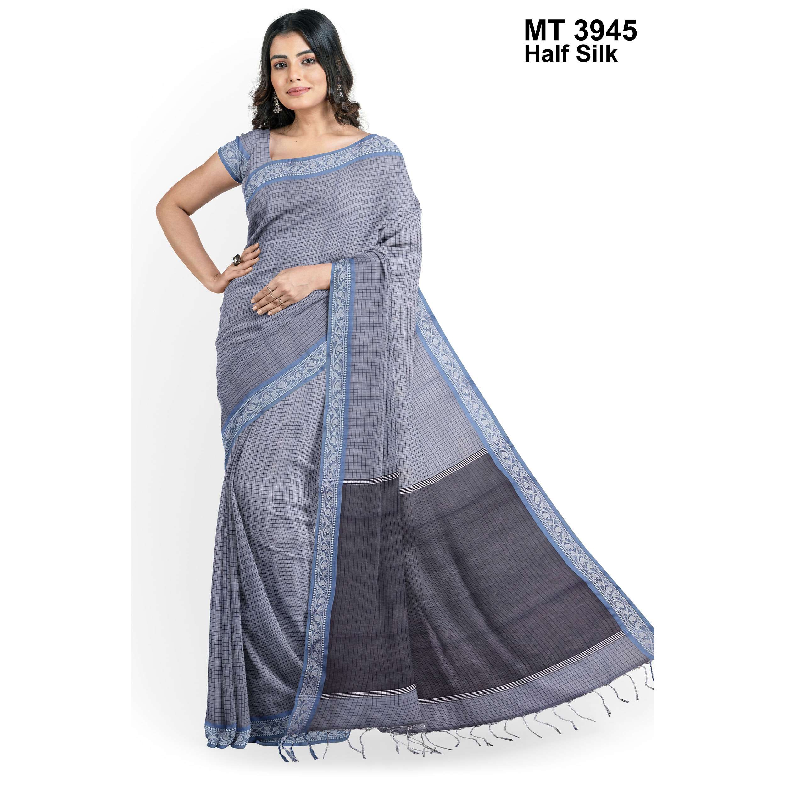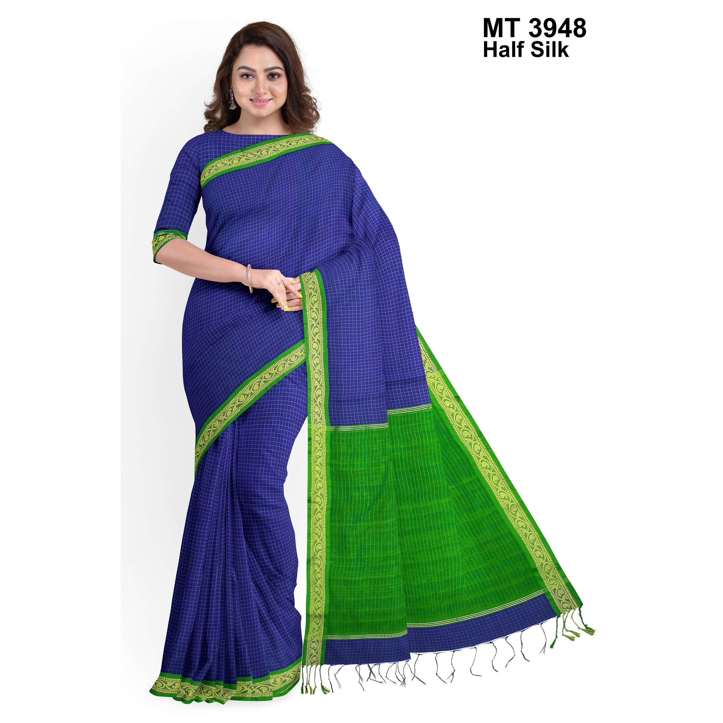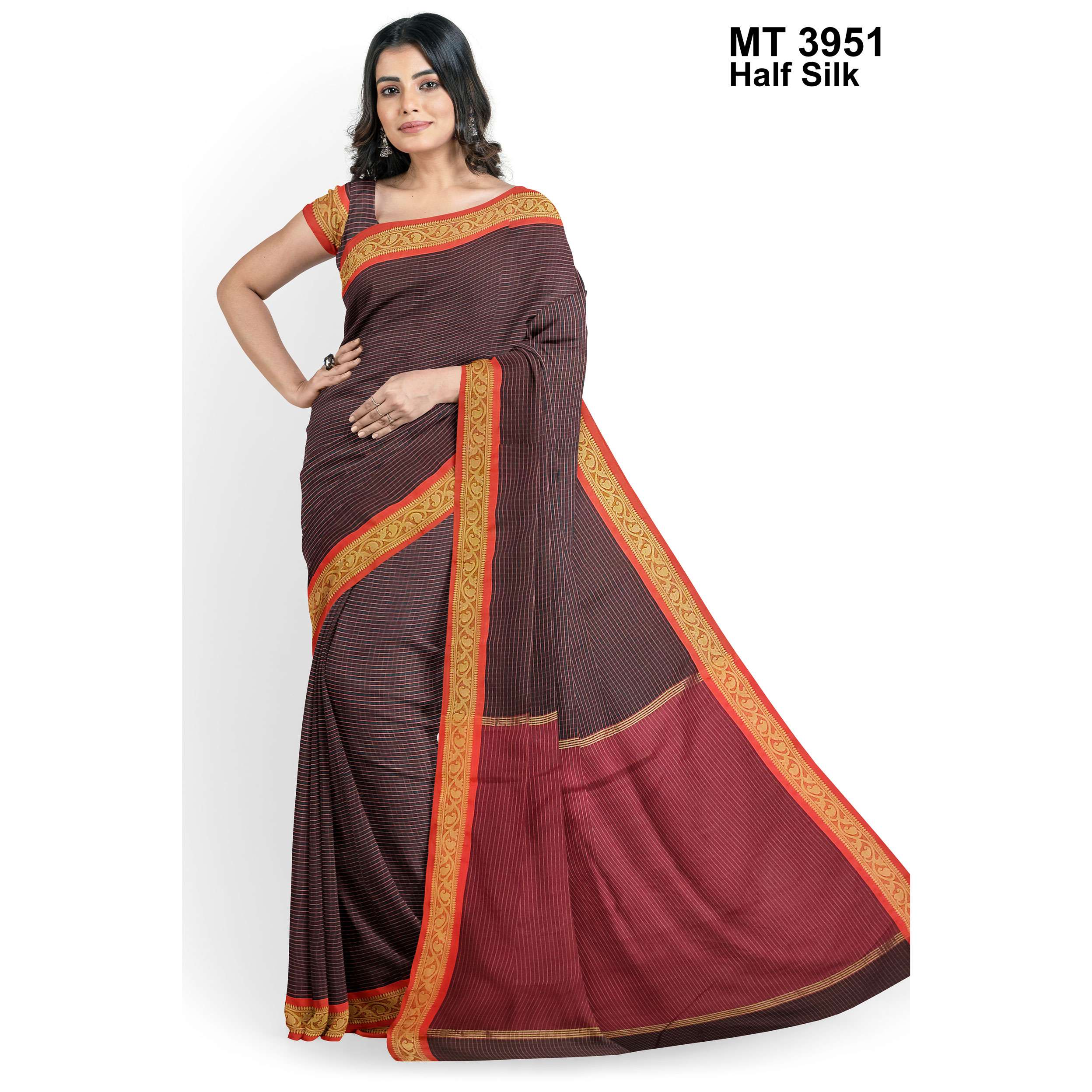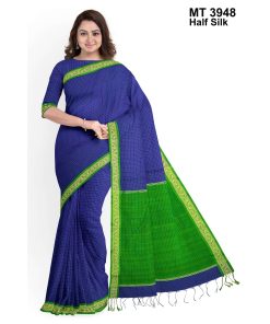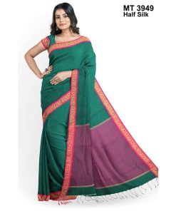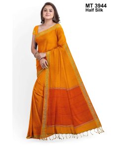 টাঙ্গাইলের ঐতিহ্যবাহী হাফ সিল্ক বুননের এক নান্দনিক উপস্থাপন। এতে রয়েছে সুন্দরভাবে হাতে বোনা কাজ ও সূক্ষ্ম ডিজাইন, যা শাড়িটিকে করে তুলেছে আলাদা ও দৃষ্টিনন্দন। আঁচল এবং পাড়ে নকশার নিপুণতা চোখে পড়ার মতো। এটি এমন একটি শাড়ি যা পরিধানে এনে দেয় আত্মবিশ্বাস ও আভিজাত্য।