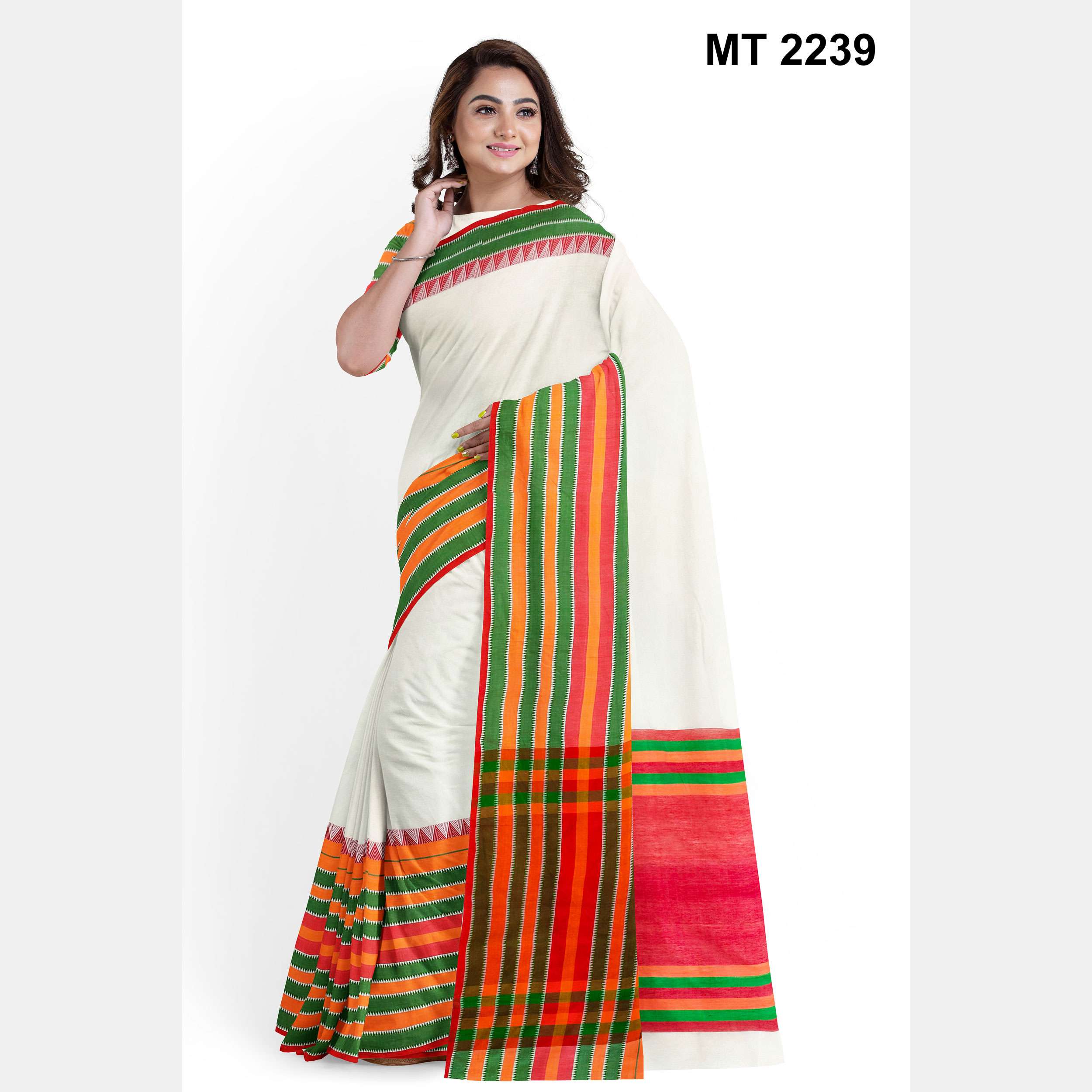 টাঙ্গাইল তাঁতের হাফসিল্ক ধনেখালি পাড় শাড়ী ব্লাউজ পিছ সহ (MT-2239)