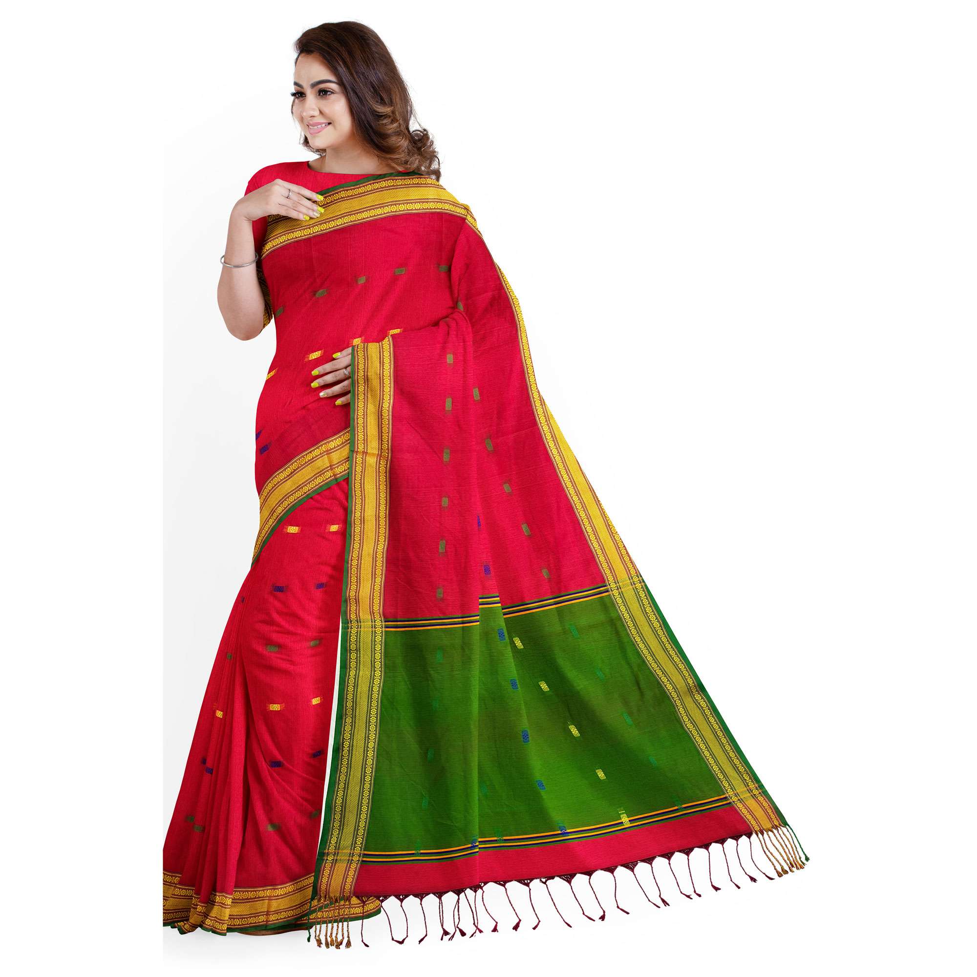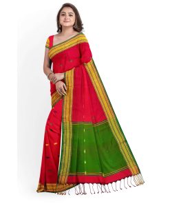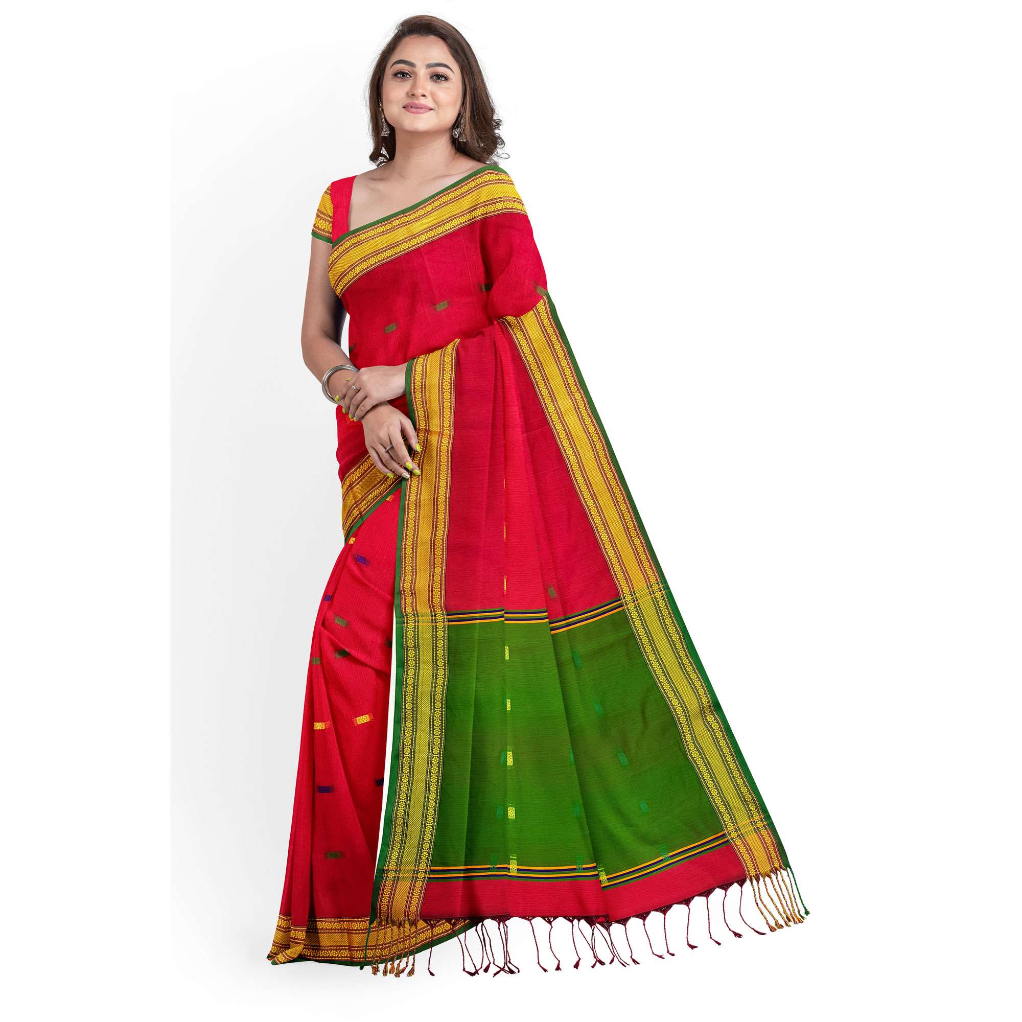 টাঙ্গাইল তাঁতের হাফসিল্ক বুটি শাড়ী ব্লাউজ পিছ সহ (MT-4047)