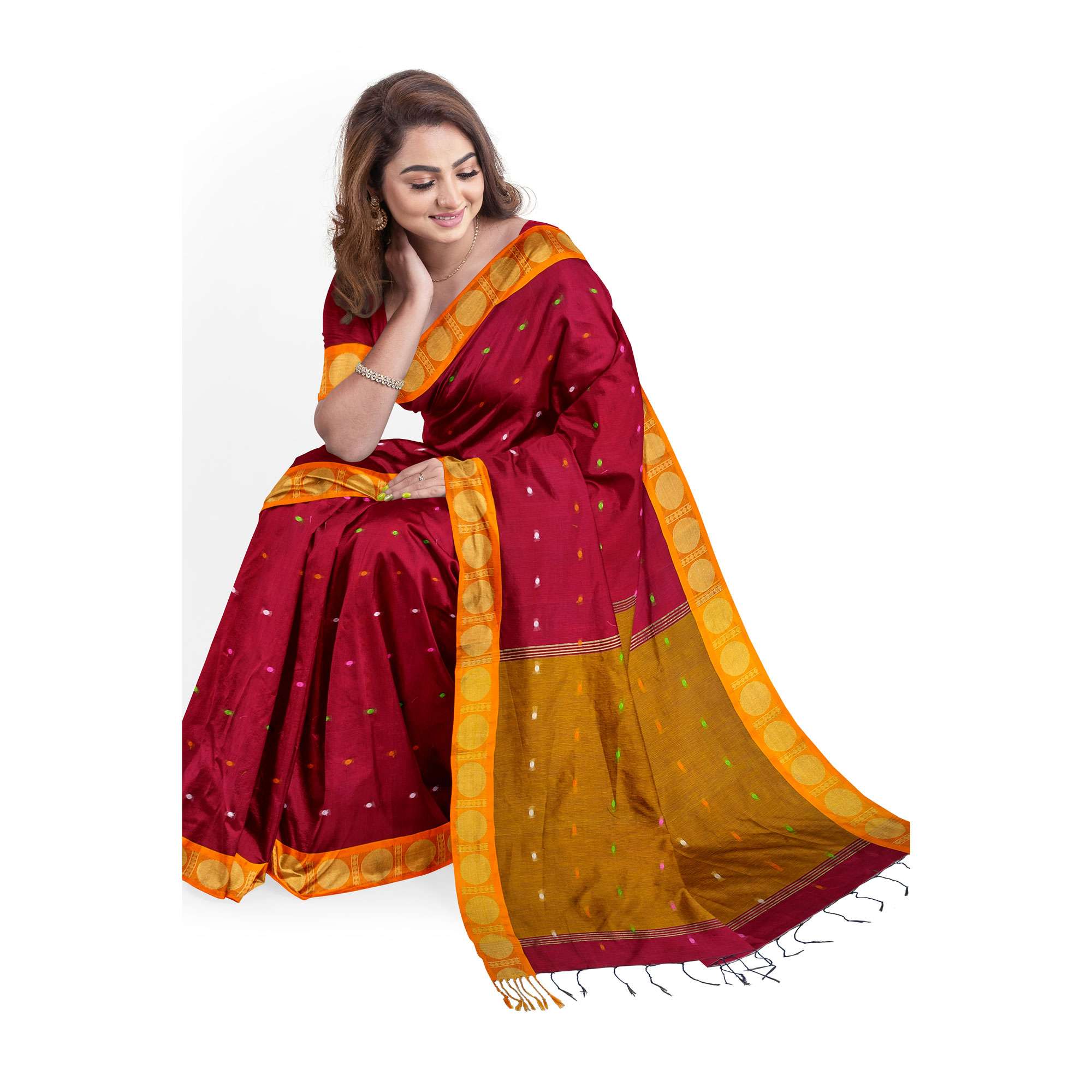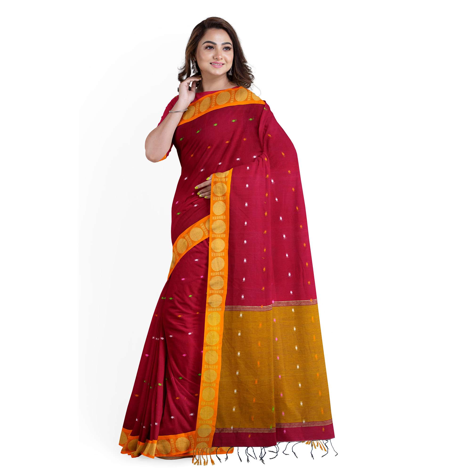 টাঙ্গাইল তাঁতের হাফসিল্ক বল পাড় বুটি শাড়ী ব্লাউজ পিছ সহ (MT-4044)