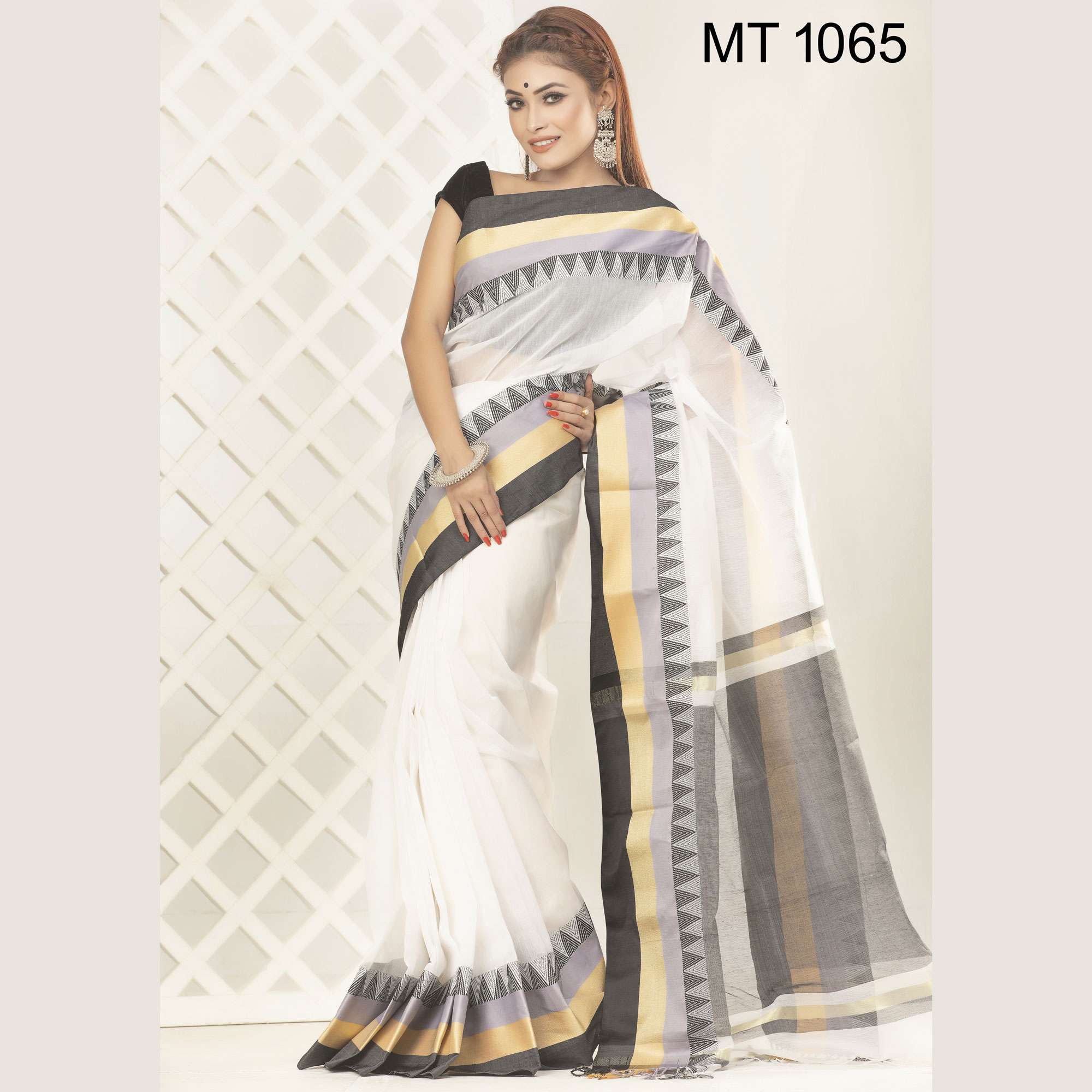 টাঙ্গাইল তাঁতের হাফ সিল্ক টেম্পল পাড় শাড়ী ব্লাউজ পিছ সহ (MT-1065)