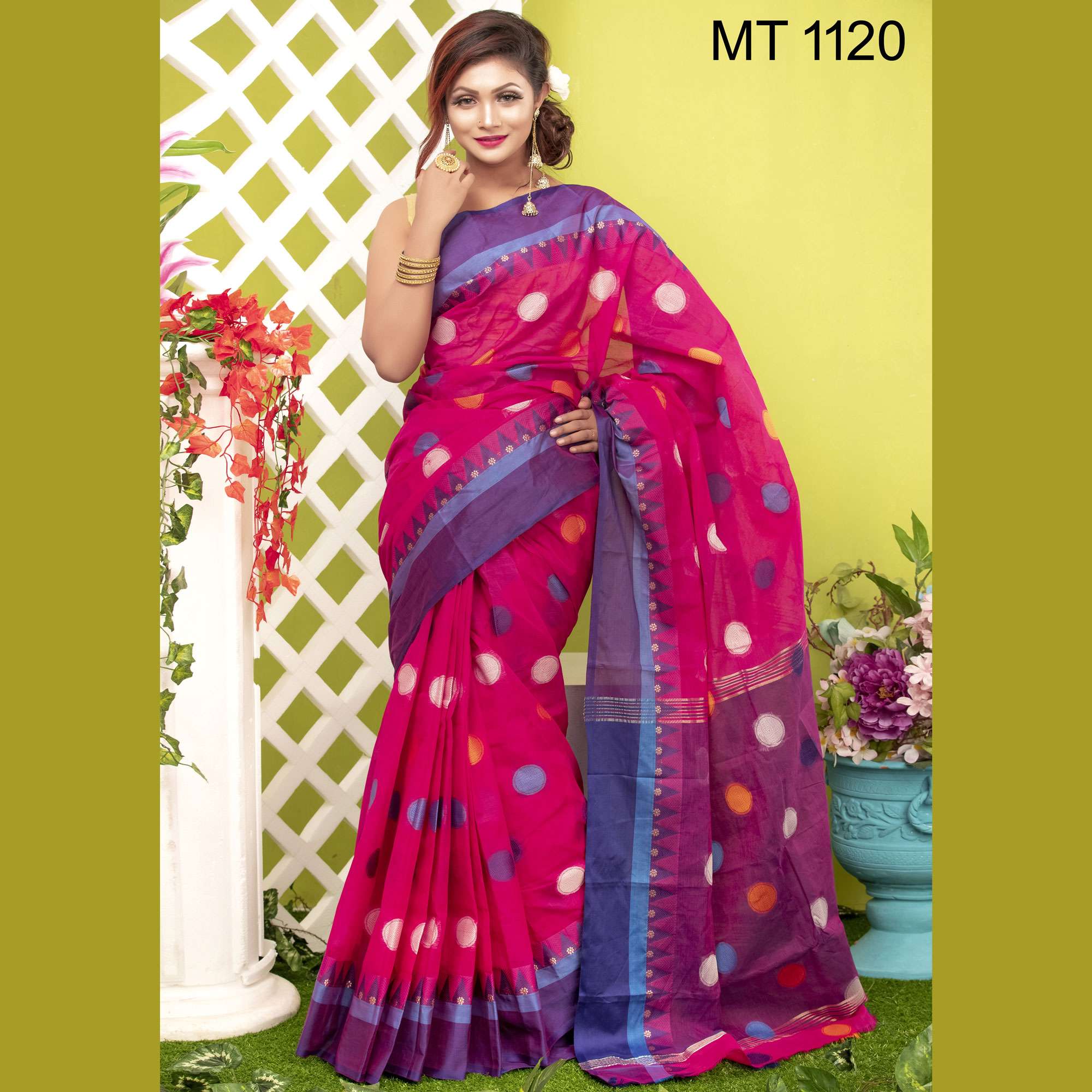 টাঙ্গাইল তাঁতের হাফ সিল্ক বল বুটি শাড়ী ব্লাউজ পিছ সহ (MT-1120)