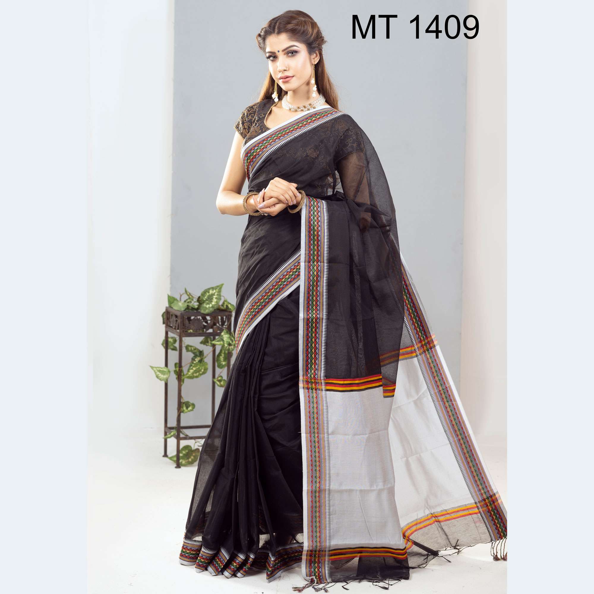 টাঙ্গাইল তাঁতের হাফ সিল্ক রুহিতন পাড় শাড়ী ব্লাউজ পিছ সহ (MT-1409)
