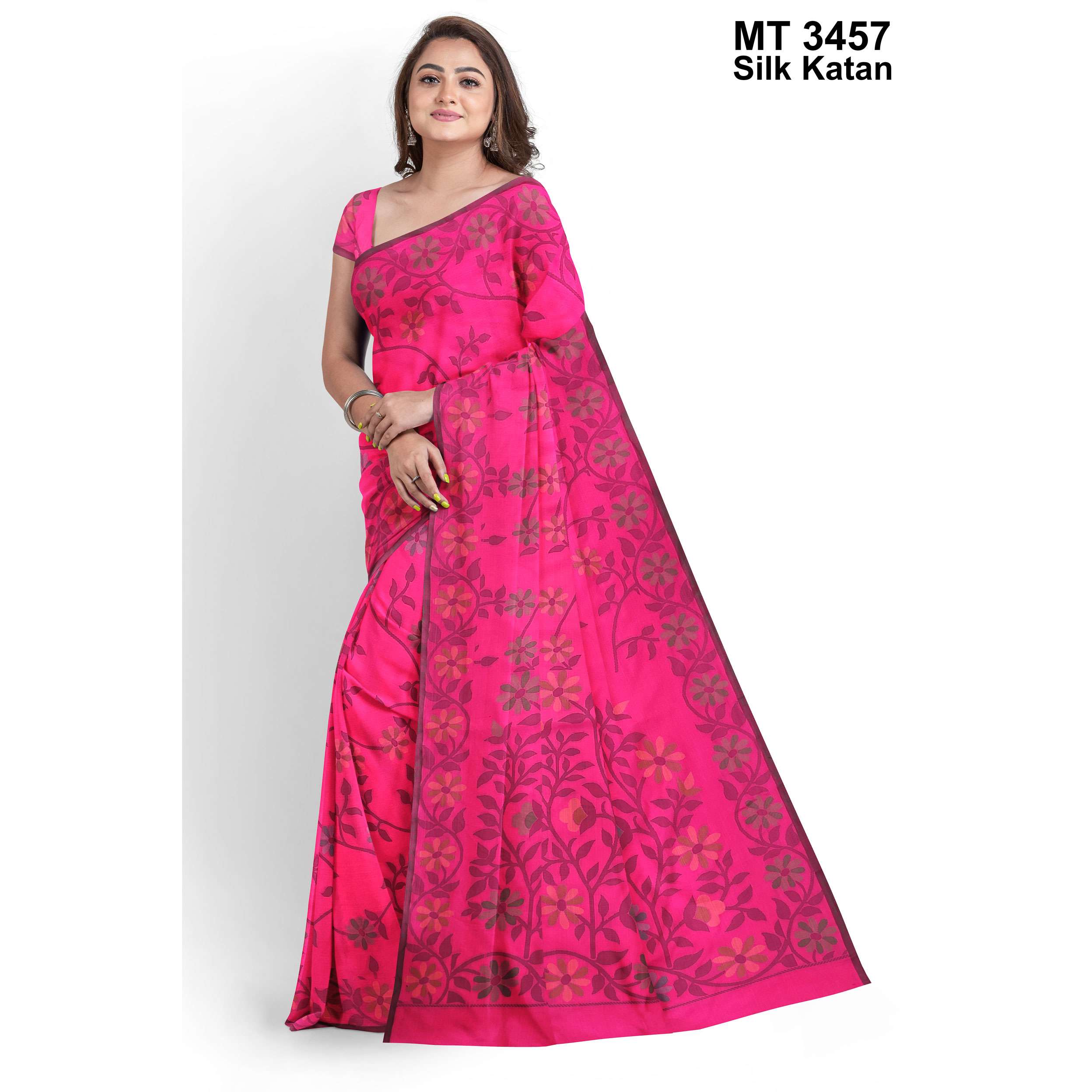 টাঙ্গাইল সিল্ক কাতান শাড়ী রানিং ব্লাউজ পিছ সহ (MT-3457)
