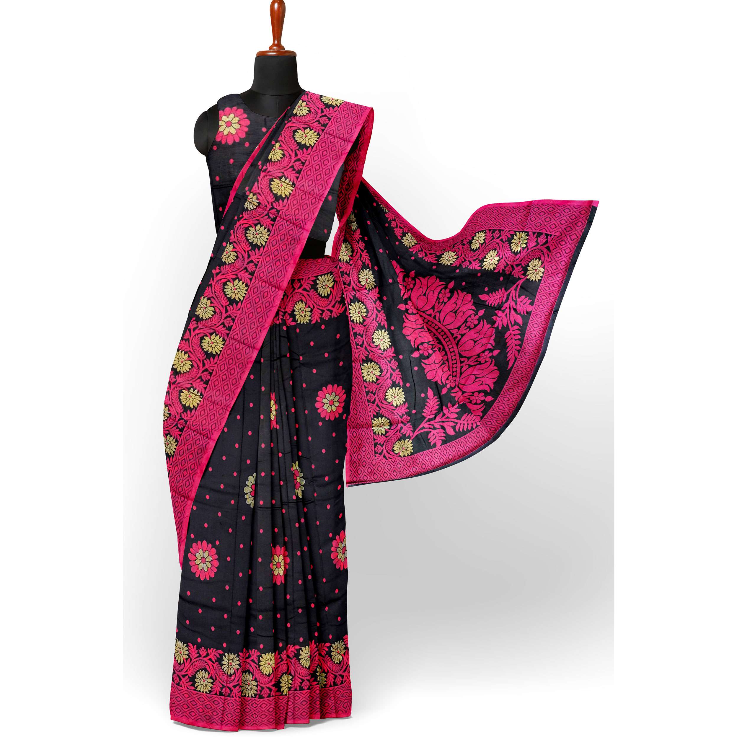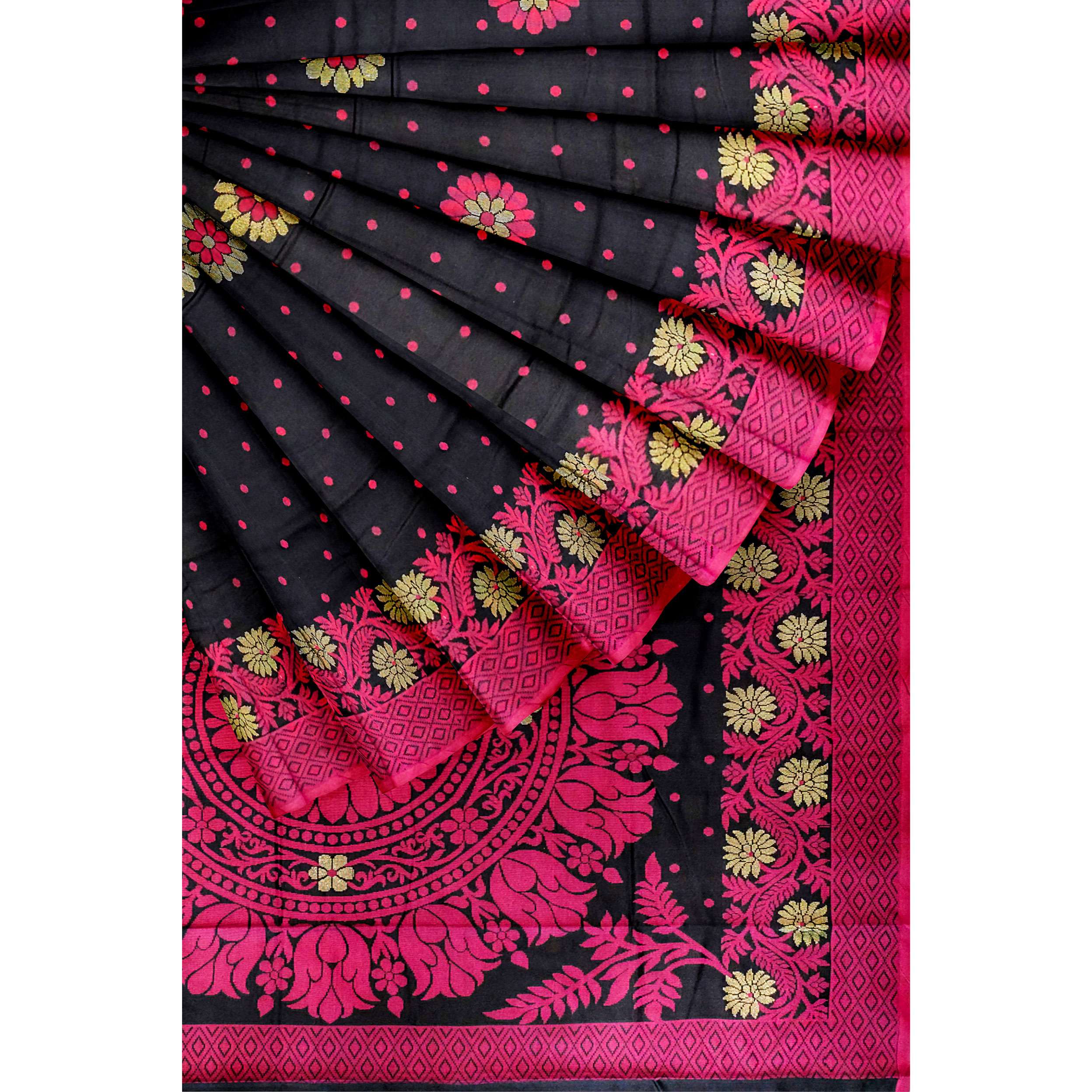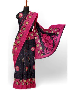 🔹  রঙ: কালো (ম্যাজেন্টা সুতা ও জরির কাজ)