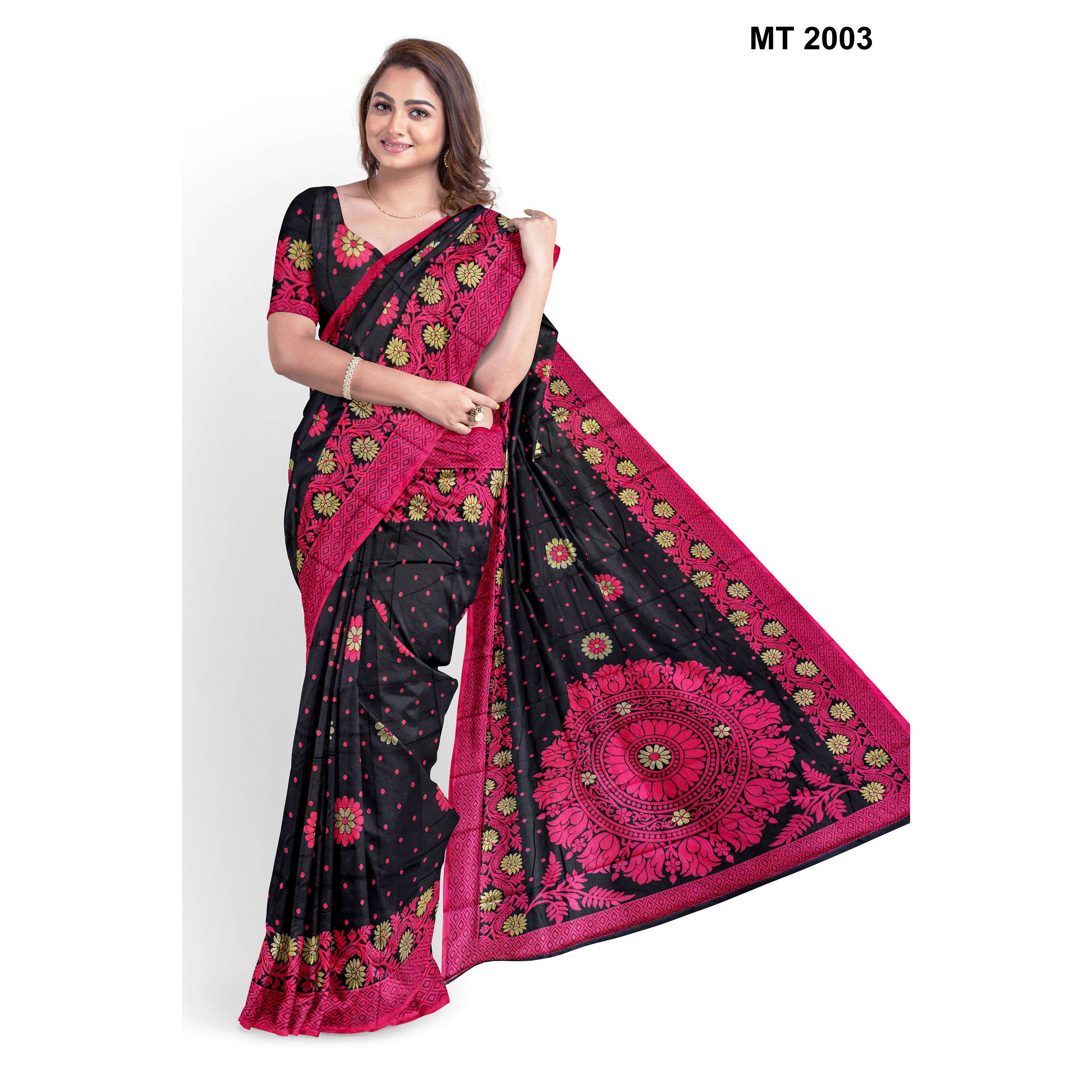 টাঙ্গাইল সিল্ক কাতান শাড়ী রানিং ব্লাউজ পিছ সহ (MT-2003)