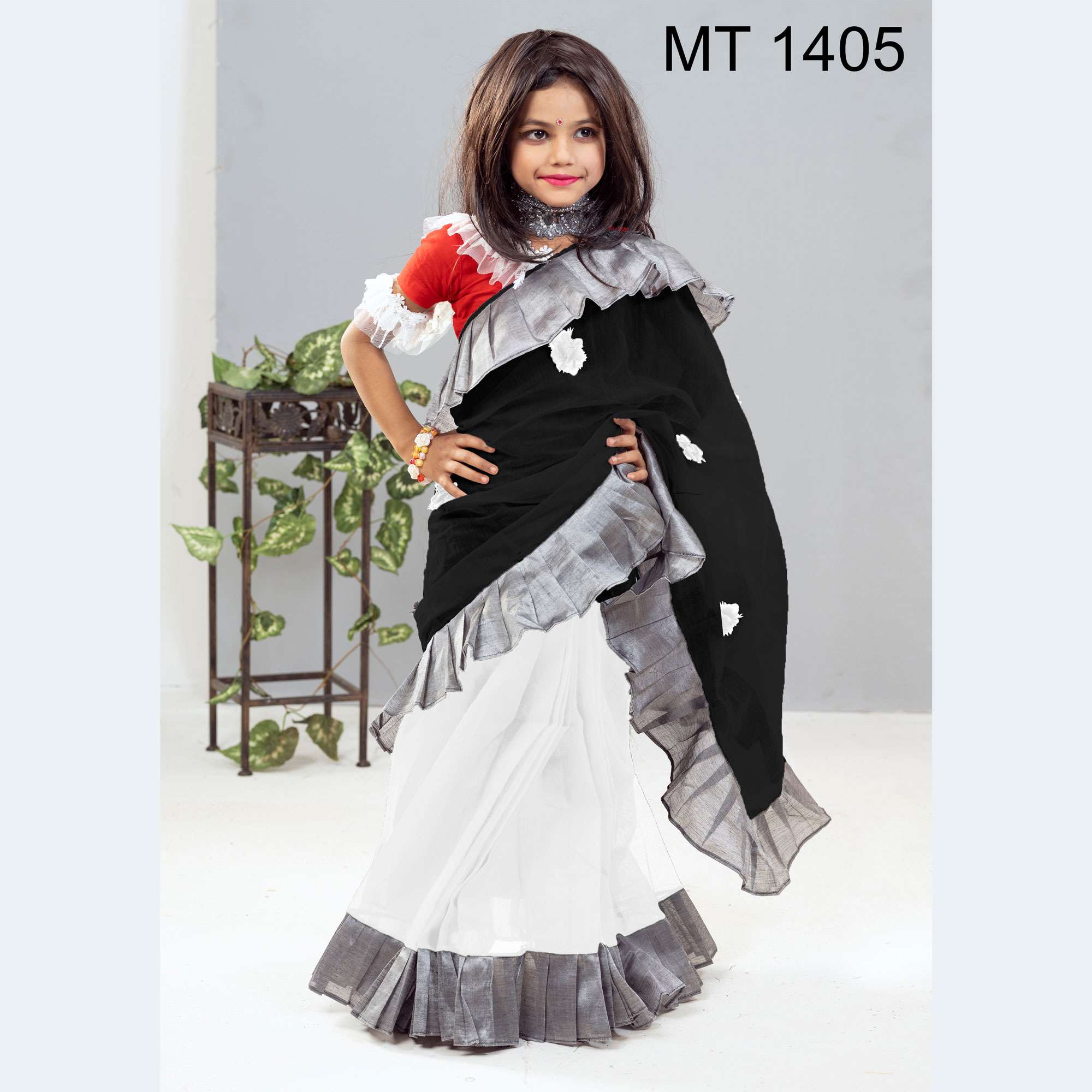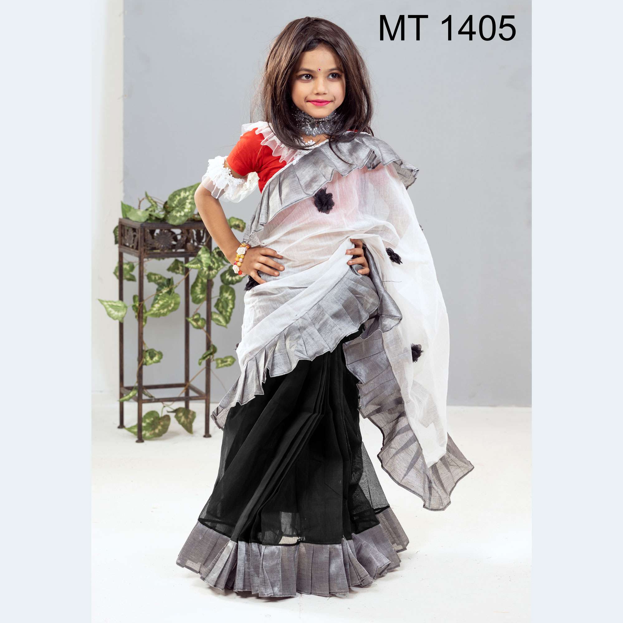 শাড়ীটি সাদা কালো রঙের, যা দেখতে খুবই প্রাণবন্ত। এর আঁচলে, সাদা কালো ফুল রয়েছে, যা এটিকে একটি উৎসবমুখর চেহারা দিয়েছে।