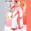 শাড়ীটি লাল সাদা রঙের, যা দেখতে খুবই প্রাণবন্ত। এর আঁচল ও কুচি অংশে লাল সাদা রঙের চেক ডিজাইন রয়েছে, যা এটিকে একটি উৎসবমুখর চেহারা দিয়েছে।