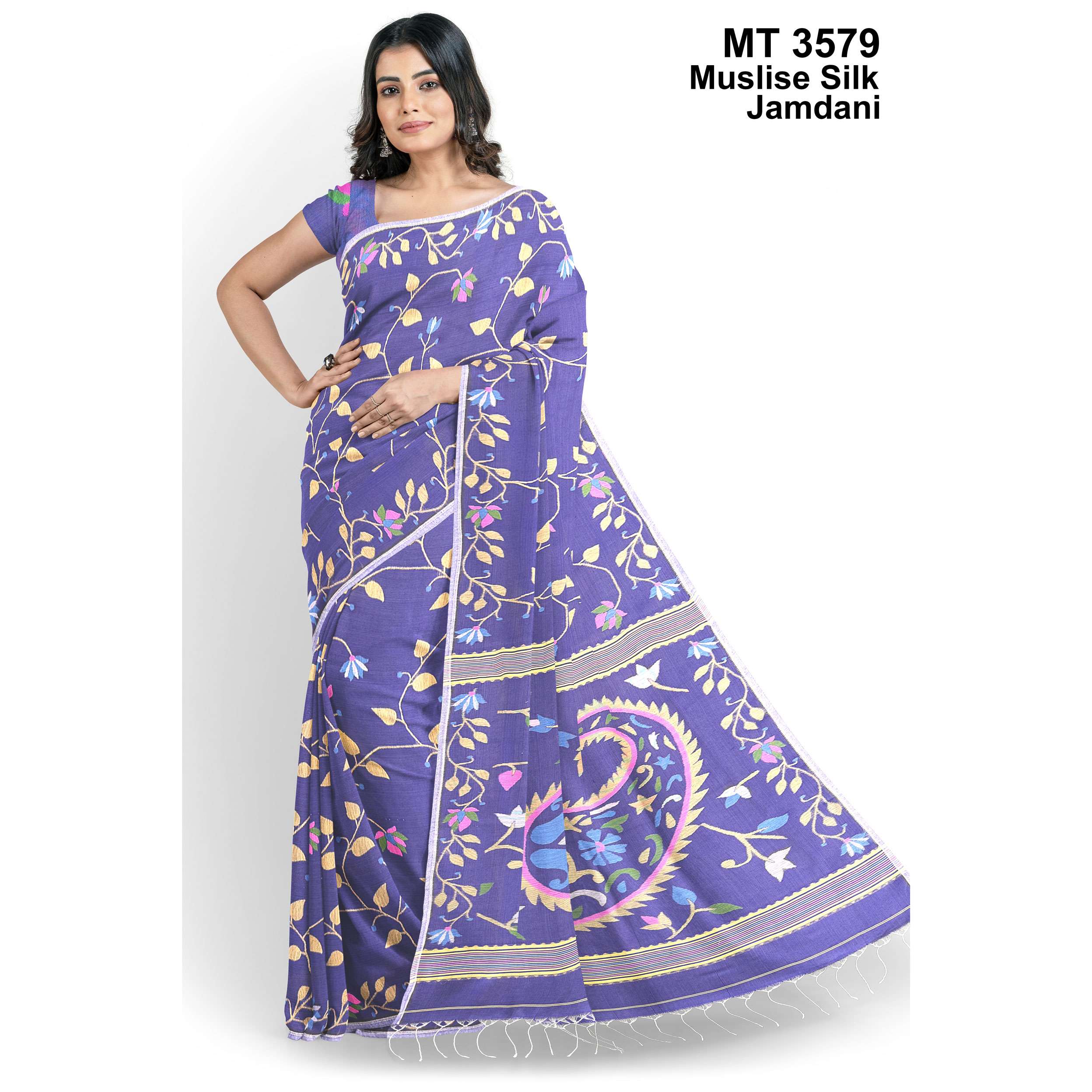মাসলাইস সিল্ক জামদানি শাড়ী ব্লাউজ পিছ সহ (MT-3579)