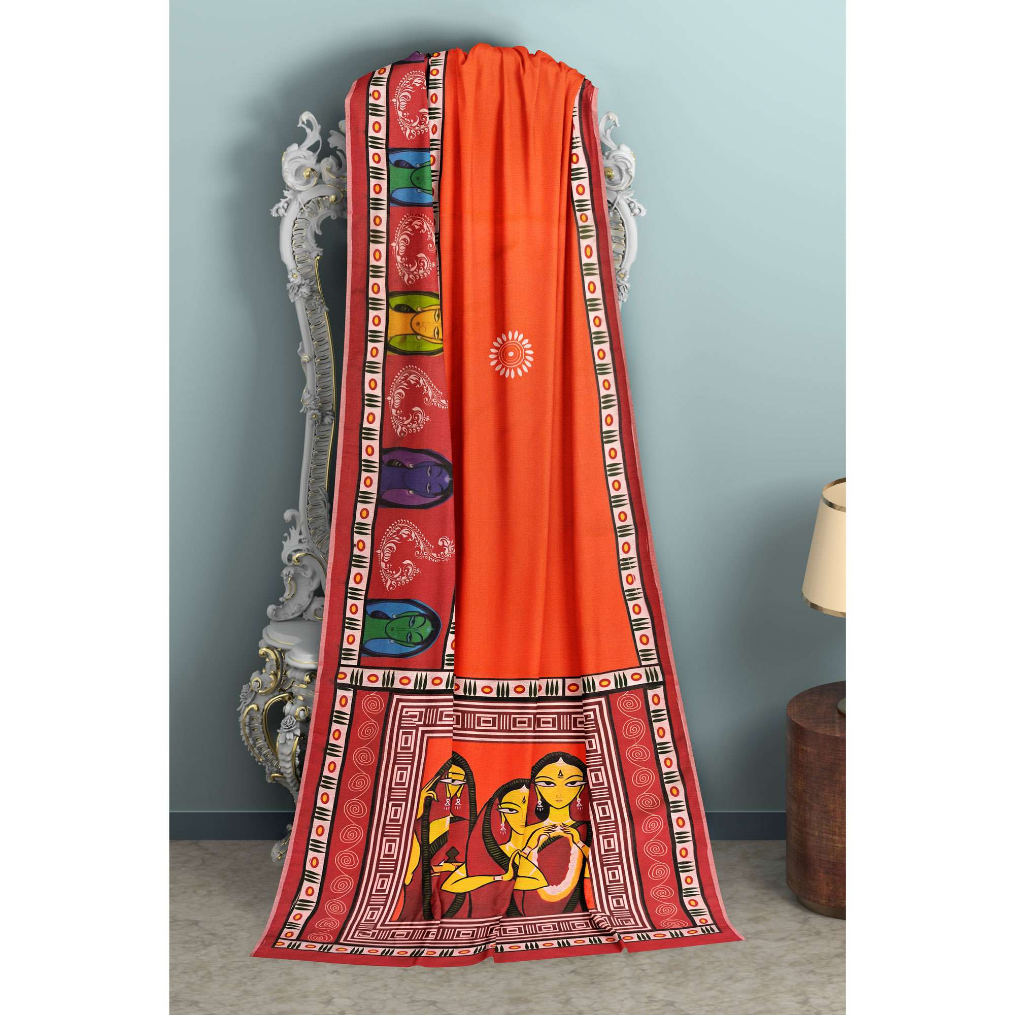 • ডিজাইন: ডিজিটাল প্রিন্টেড আর্টওয়ার্ক – লোকশিল্প অনুপ্রাণিত