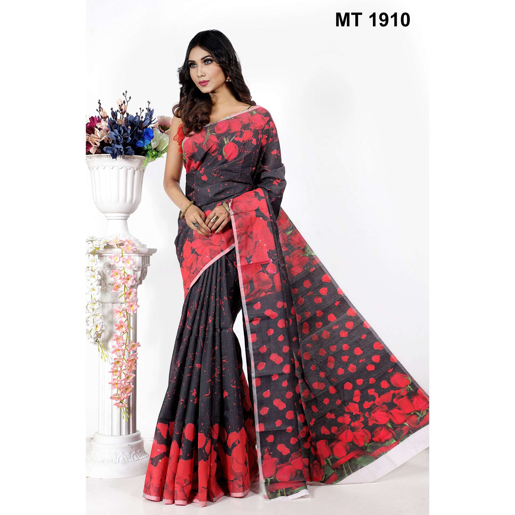 দারুণ নরম ও আরামদায়ক মাসলাইস সিল্ক ফেব্রিকে তৈরি। পুরো শরীরজুড়ে ডিজিটাল প্রিন্টেড গোলাপের পাপড়ির নকশা। আঁচল ও বডিতে লাল গোলাপের নকশা – একদম ইউনিক ও স্টাইলিশ। দৈনন্দিন আয়োজনে, ঈদ, পূজা বা হালকা পার্টিতে পরার জন্য আদর্শ।