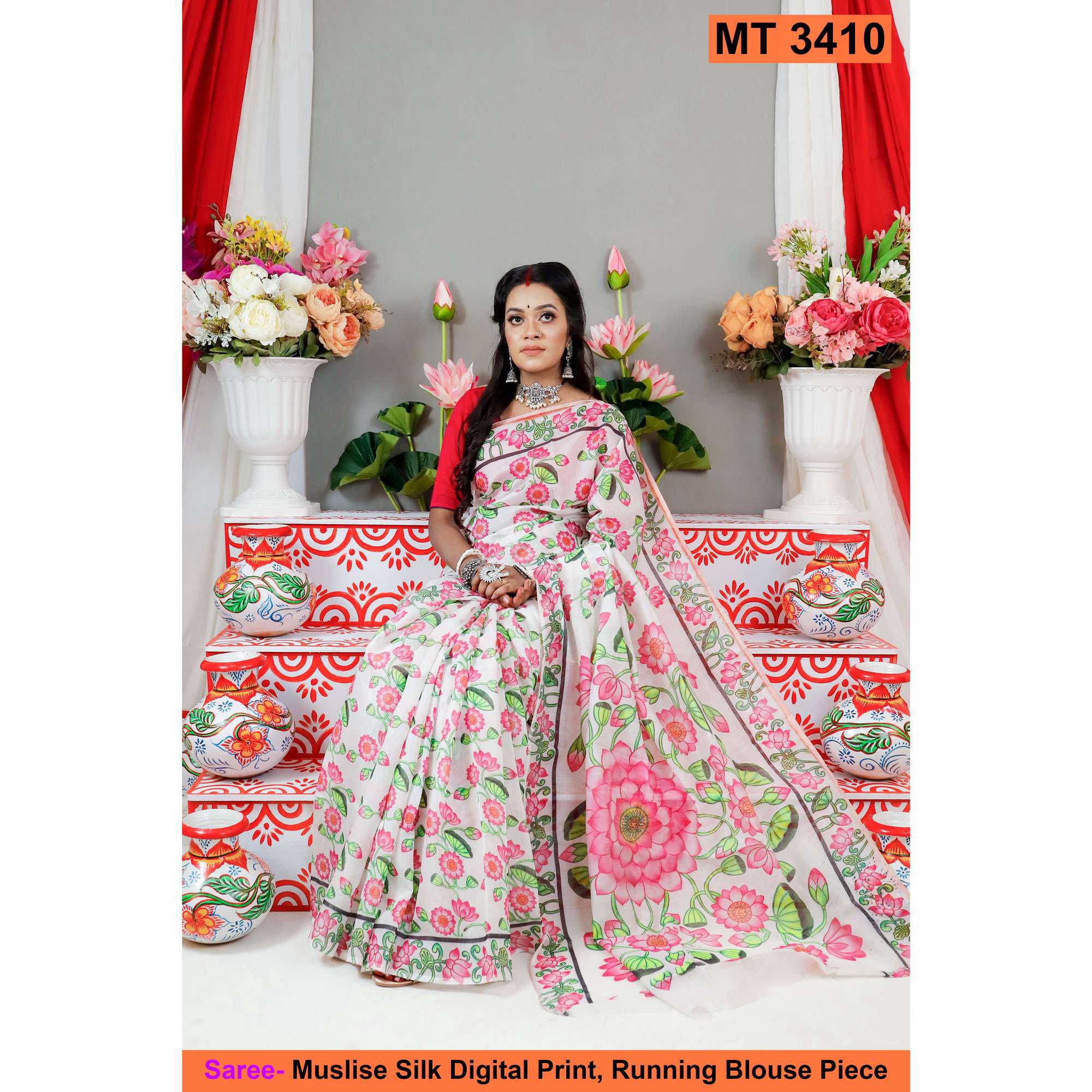 মাসলাইস সিল্ক ডিজিটাল প্রিন্ট শাড়ী (MT-3410)