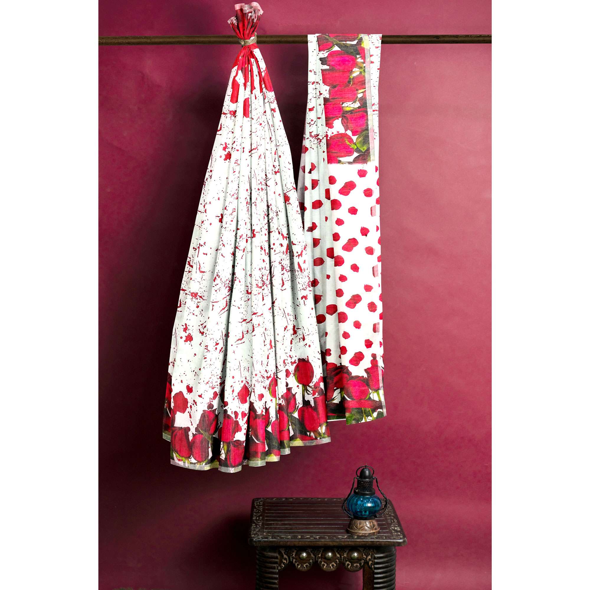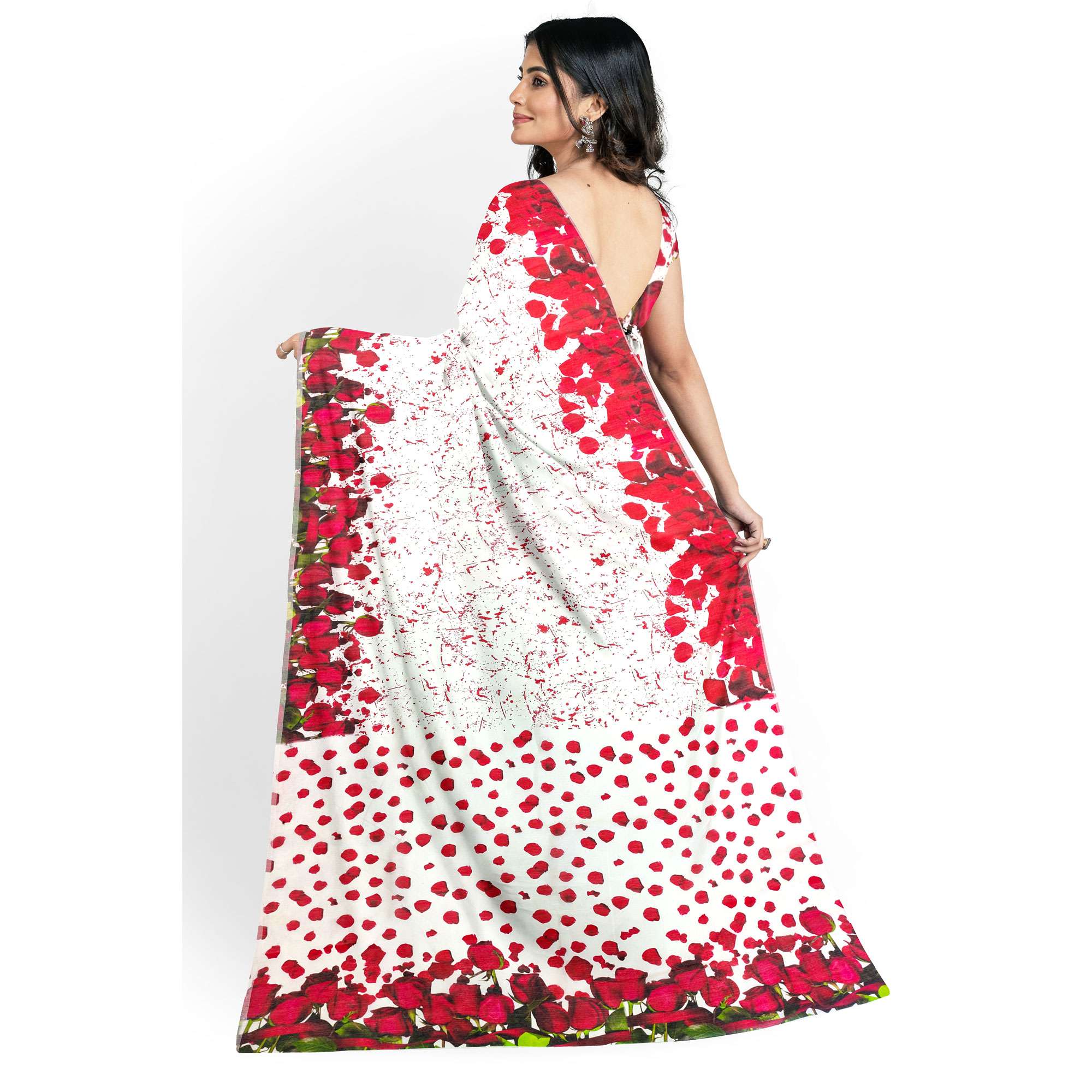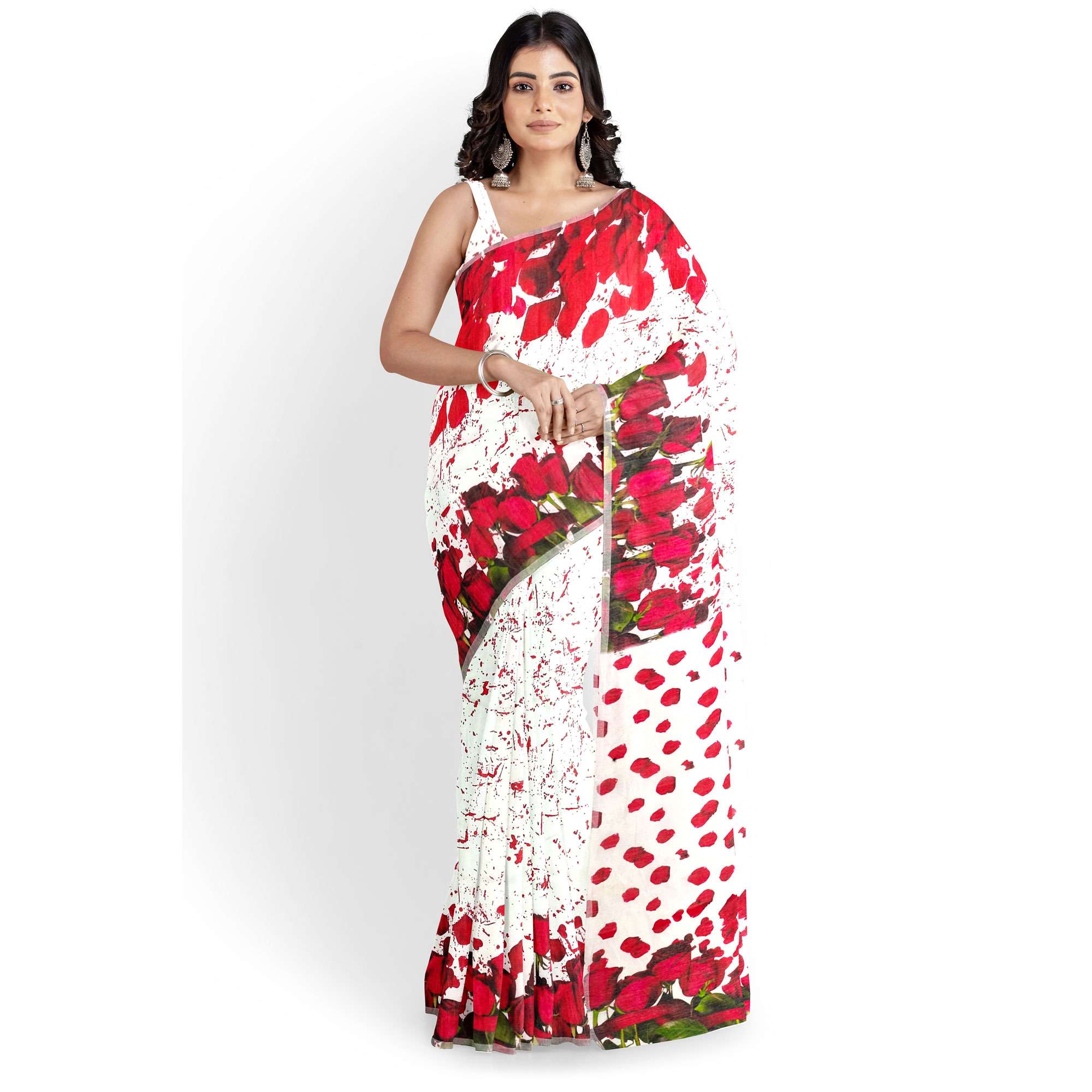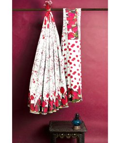 দারুণ নরম ও আরামদায়ক মাসলাইস সিল্ক ফেব্রিকে তৈরি। পুরো শরীরজুড়ে ডিজিটাল প্রিন্টেড গোলাপের পাপড়ির নকশা। আঁচল ও বডিতে লাল গোলাপের নকশা – একদম ইউনিক ও স্টাইলিশ। দৈনন্দিন আয়োজনে, ঈদ, পূজা বা হালকা পার্টিতে পরার জন্য আদর্শ।
