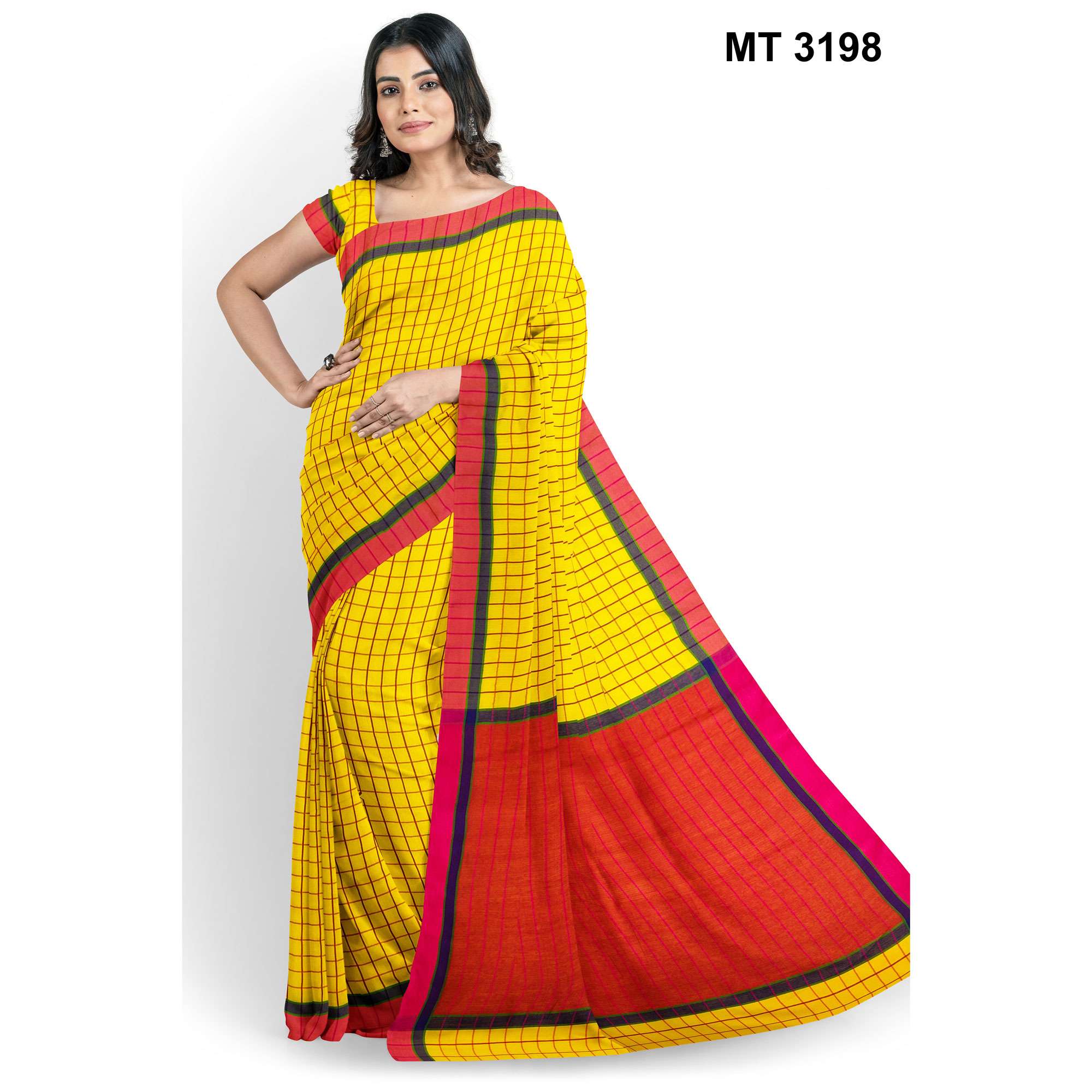 সফট হাফ সিল্ক চেক টাঙ্গাইল তাঁতের শাড়ী ব্লাউজ পিছ সহ (MT-3198)
