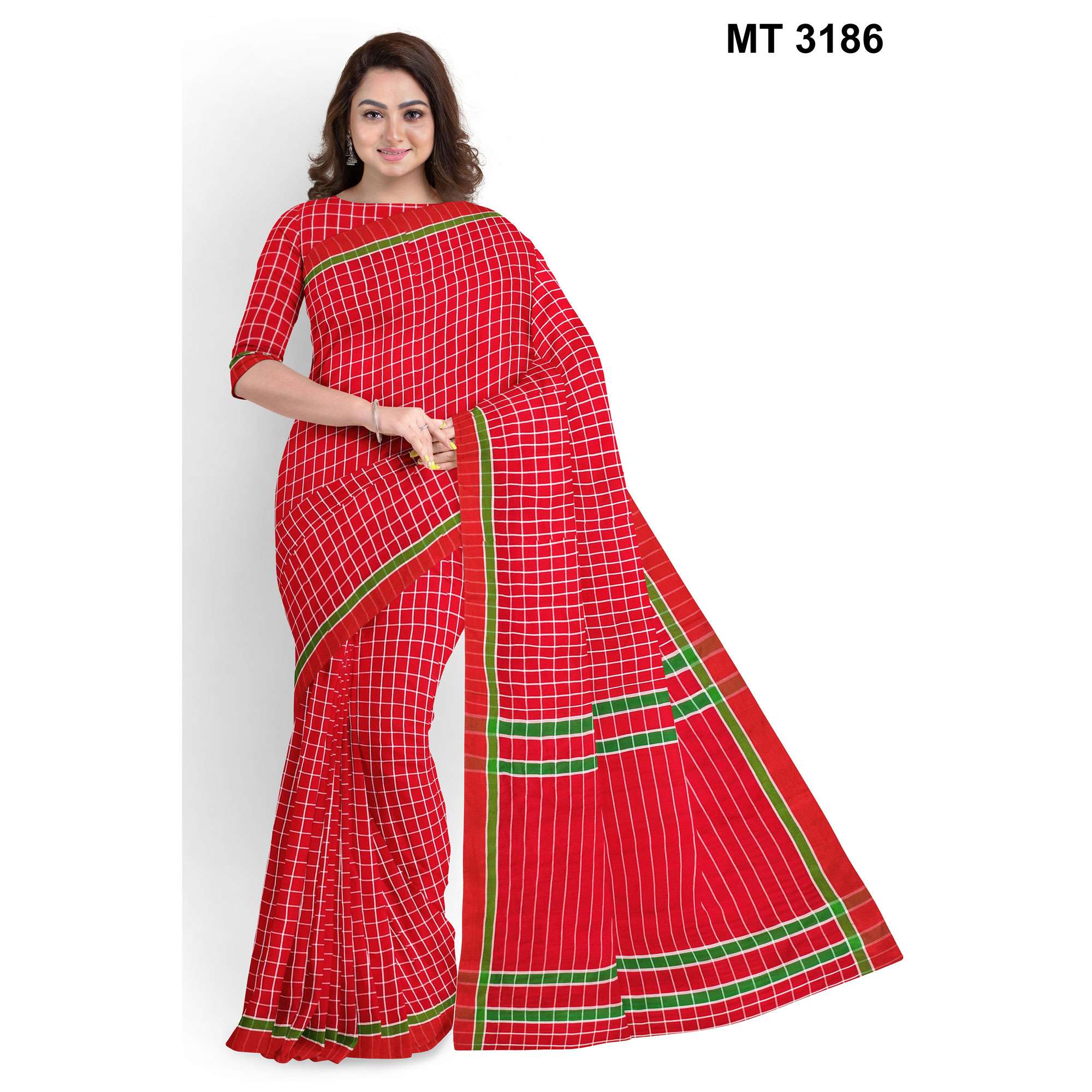 সফট হাফ সিল্ক চেক টাঙ্গাইল তাঁতের শাড়ী ব্লাউজ পিছ সহ (MT-3186)