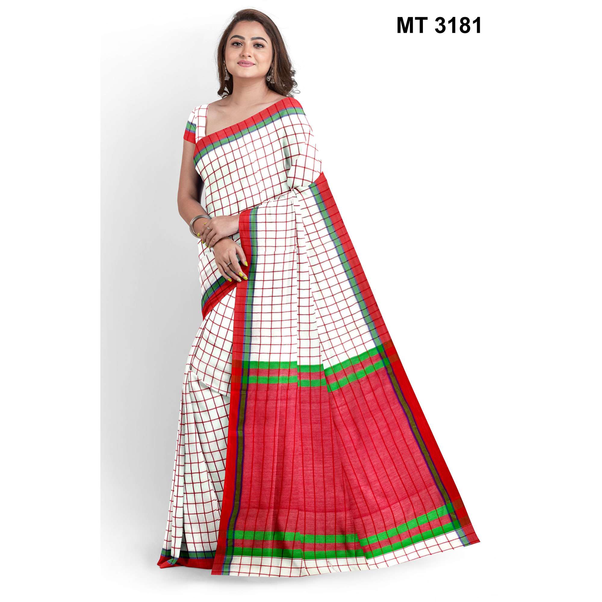 সফট হাফ সিল্ক চেক টাঙ্গাইল তাঁতের শাড়ী ব্লাউজ পিছ সহ (MT-3181)