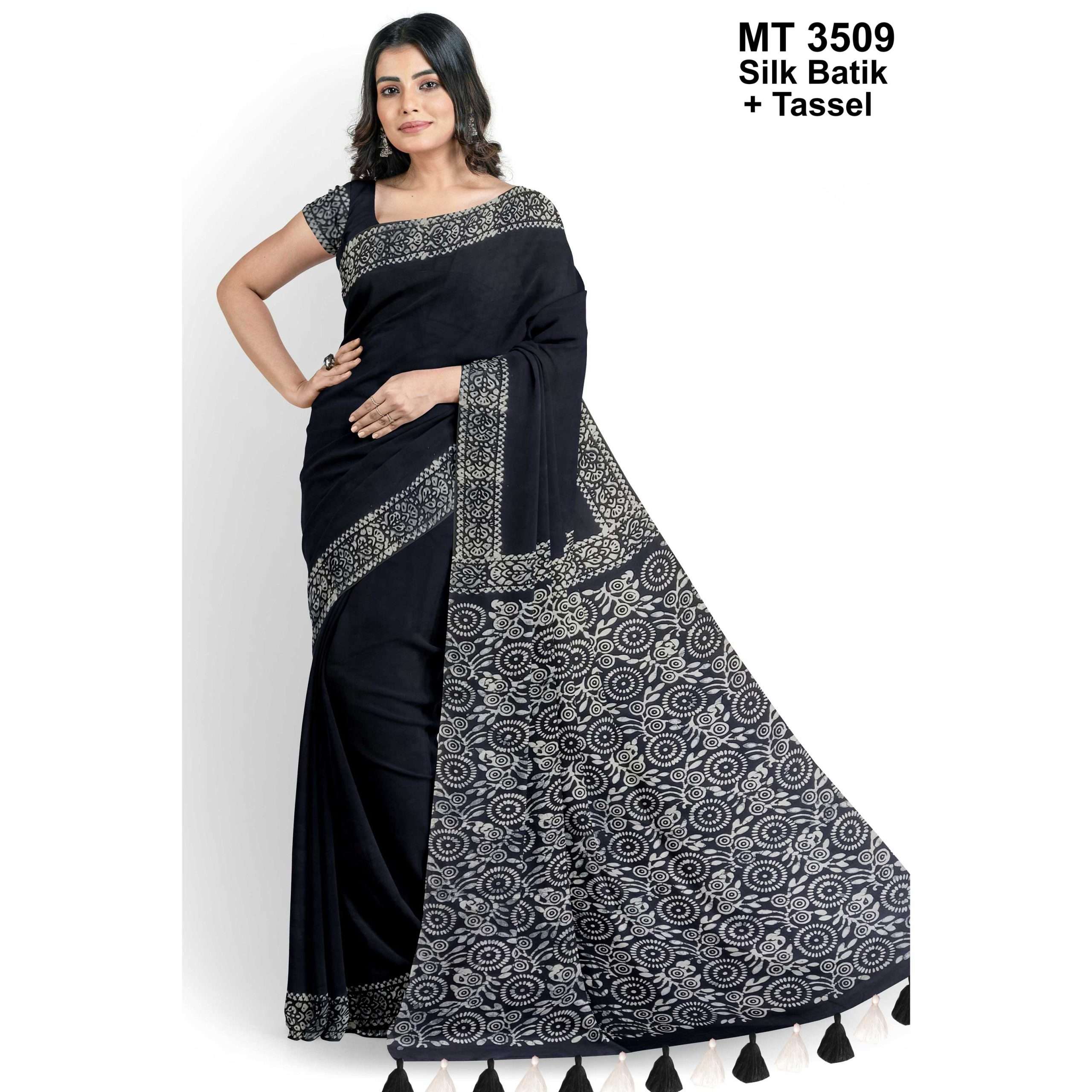 Silk Batik Saree with Tassle & Attached Blouse Piece (MT-3509)