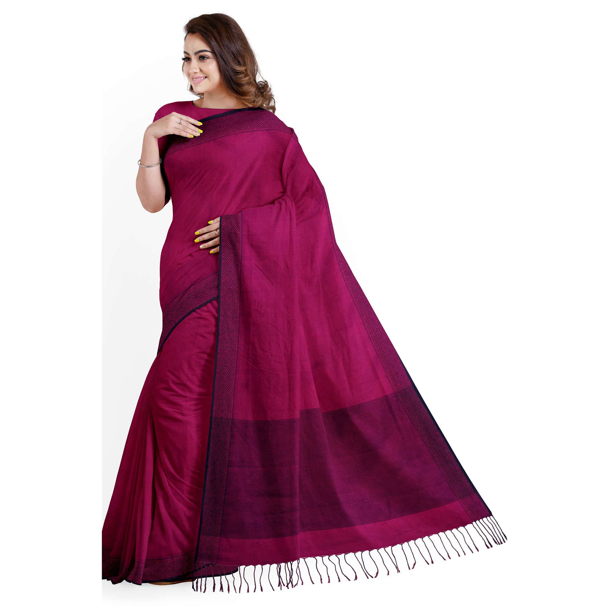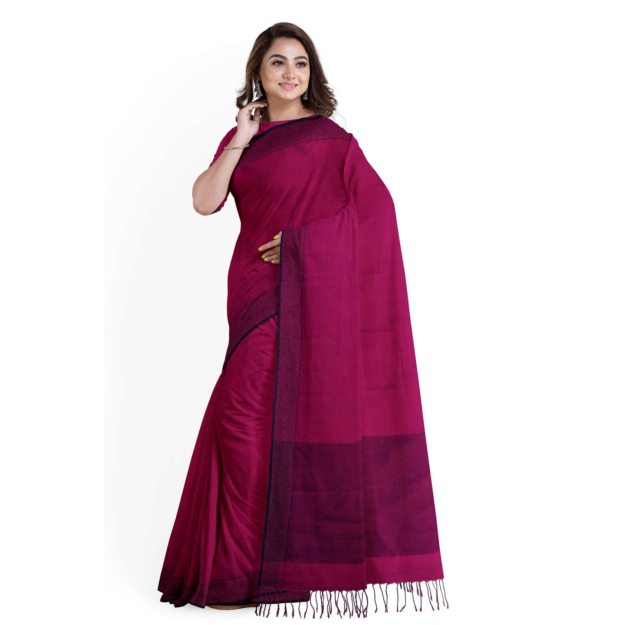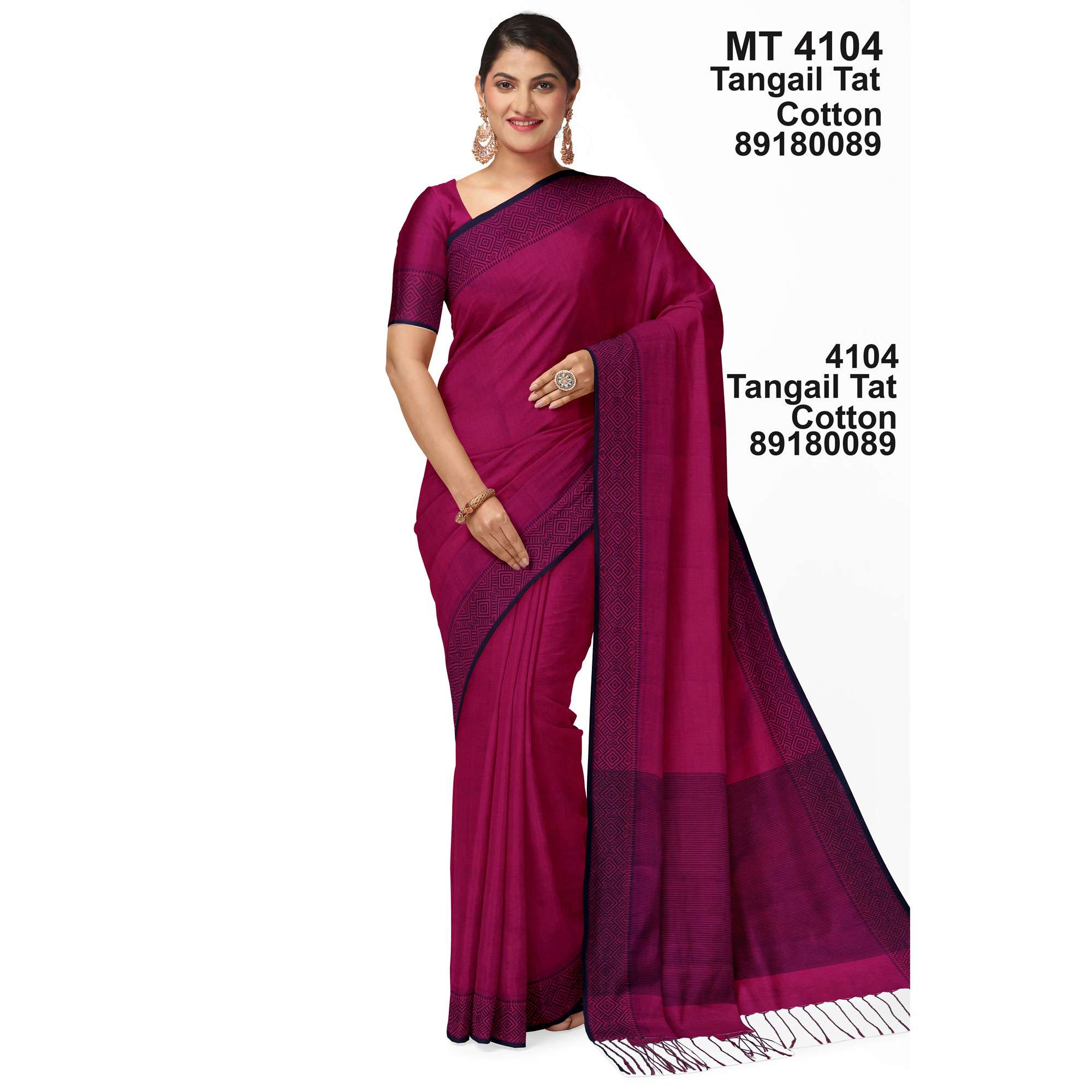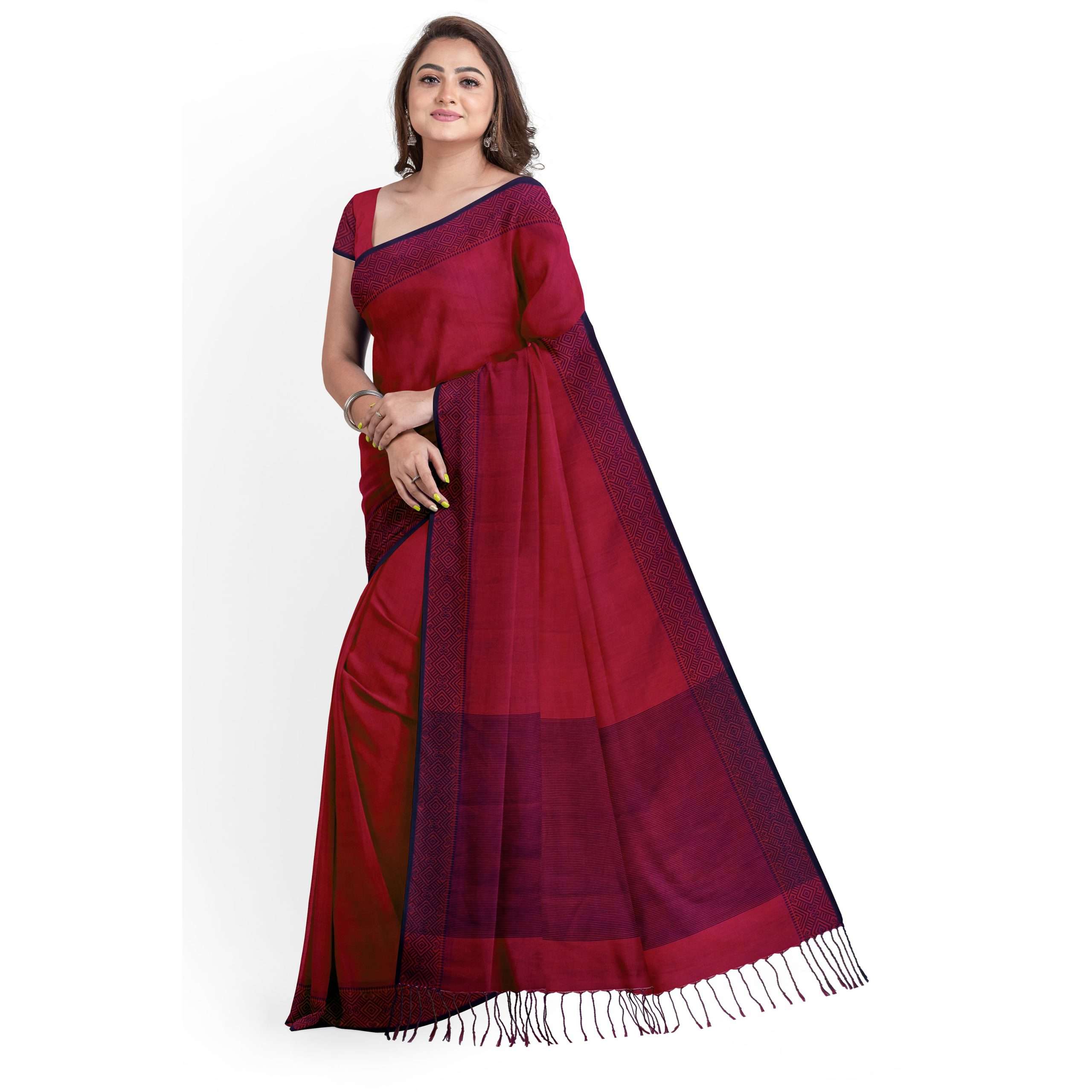 টাঙ্গাইল তাঁতের সুতি শাড়ী বাংলাদেশের টাঙ্গাইল অঞ্চলের এক ঐতিহ্যবাহী হস্তচালিত শাড়ী। এই শাড়ীর প্রধান বৈশিষ্ট্য হলো এর সূক্ষ্ম সুতি সূতা এবং হালকা ও আরামদায়ক গঠন, যা গরম আবহাওয়ার জন্য একদম উপযুক্ত। টাঙ্গাইল শাড়ীতে সাধারণত জামদানি শৈলীর নকশা দেখা যায়—ফুল, লতা বা জ্যামিতিক নকশা হাতে তাঁতে বোনা হয়। এর পাড় ও আঁচলে থাকে চমৎকার রঙের সমন্বয় ও সূক্ষ্ম কারুকাজ। এই শাড়িগুলো তাদের নান্দনিকতা ও পরিশ্রমসাধ্য হস্তশিল্পের জন্য পরিচিত এবং প্রতিদিনের ব্যবহার থেকে শুরু করে বিশেষ অনুষ্ঠানেও পরার জন্য আদর্শ।